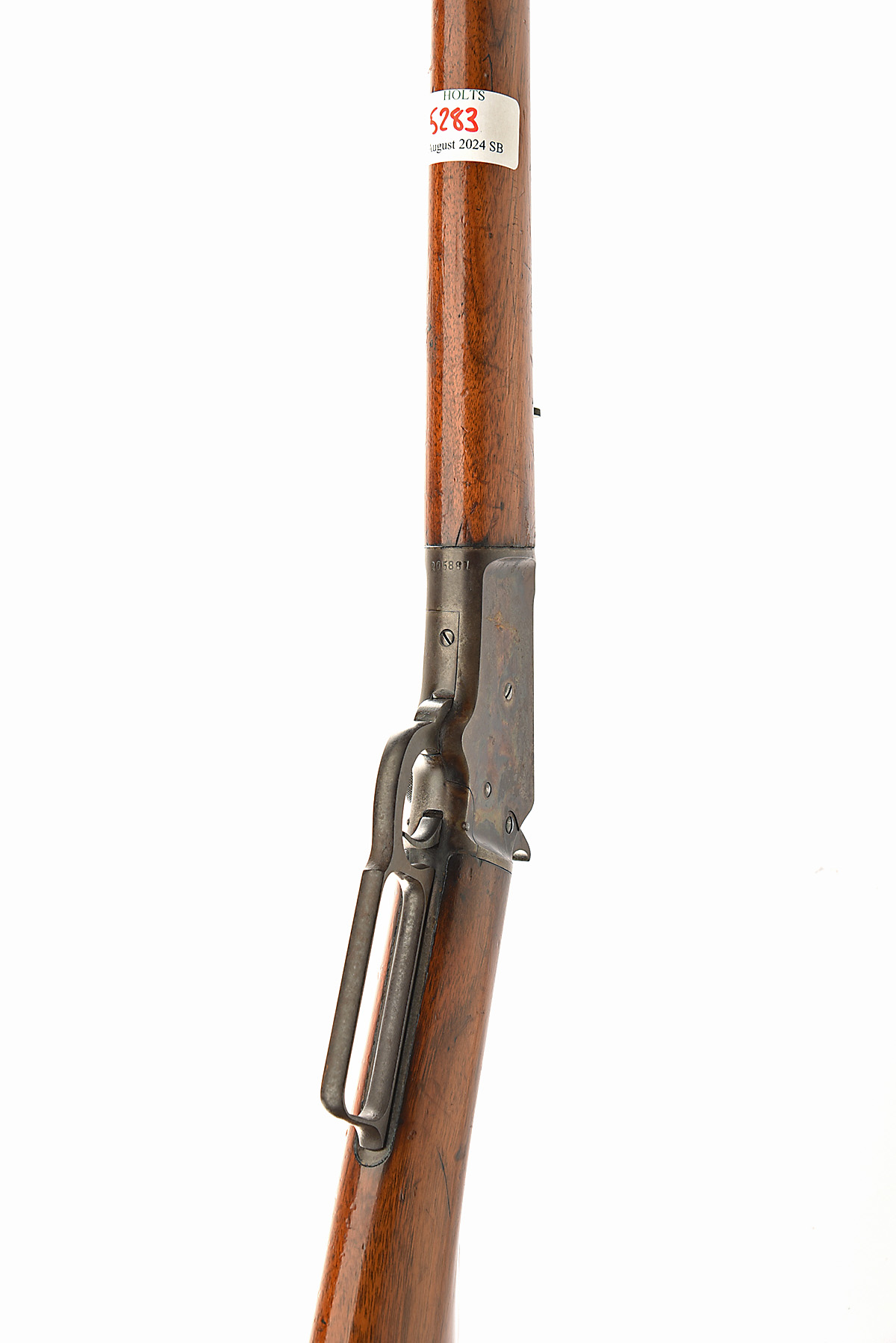 MARLIN FIRE-ARMS CO. .22 L.R. 'MODEL 1897' LEVER-ACTION TAKE-DOWN REPEATING SPORTING RIFLE, serial no. 205881, for 1900, 24in. nitro reproved octagonal barrel (in 2024), blade fore-sight, adjustable open rear sight, detachable full-length tubular magazine, take-down action with half-cock hammer safe, retaining traces of original colour-hardening and finish, 13 1/4in. pull including trademark buttplate, weight 5lb. 12oz.