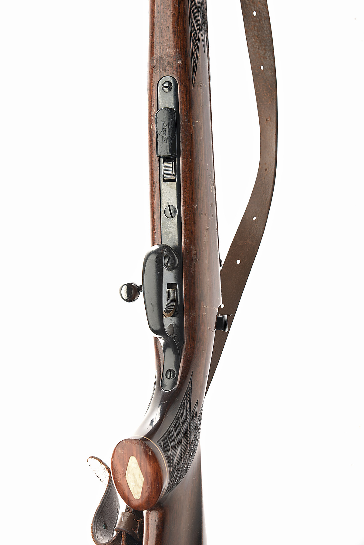 J.G. ANSCHUTZ .22 L.R. 'MODEL 1422' BOLT-MAGAZINE SPORTING RIFLE, serial no. 1124705, circa 1977, 24in. nitro barrel, ramp-mounted bead fore-sight, rear-sight missing, manual flag safety, detachable magazine, figured pistolgrip stock with cheekpiece, leather sling