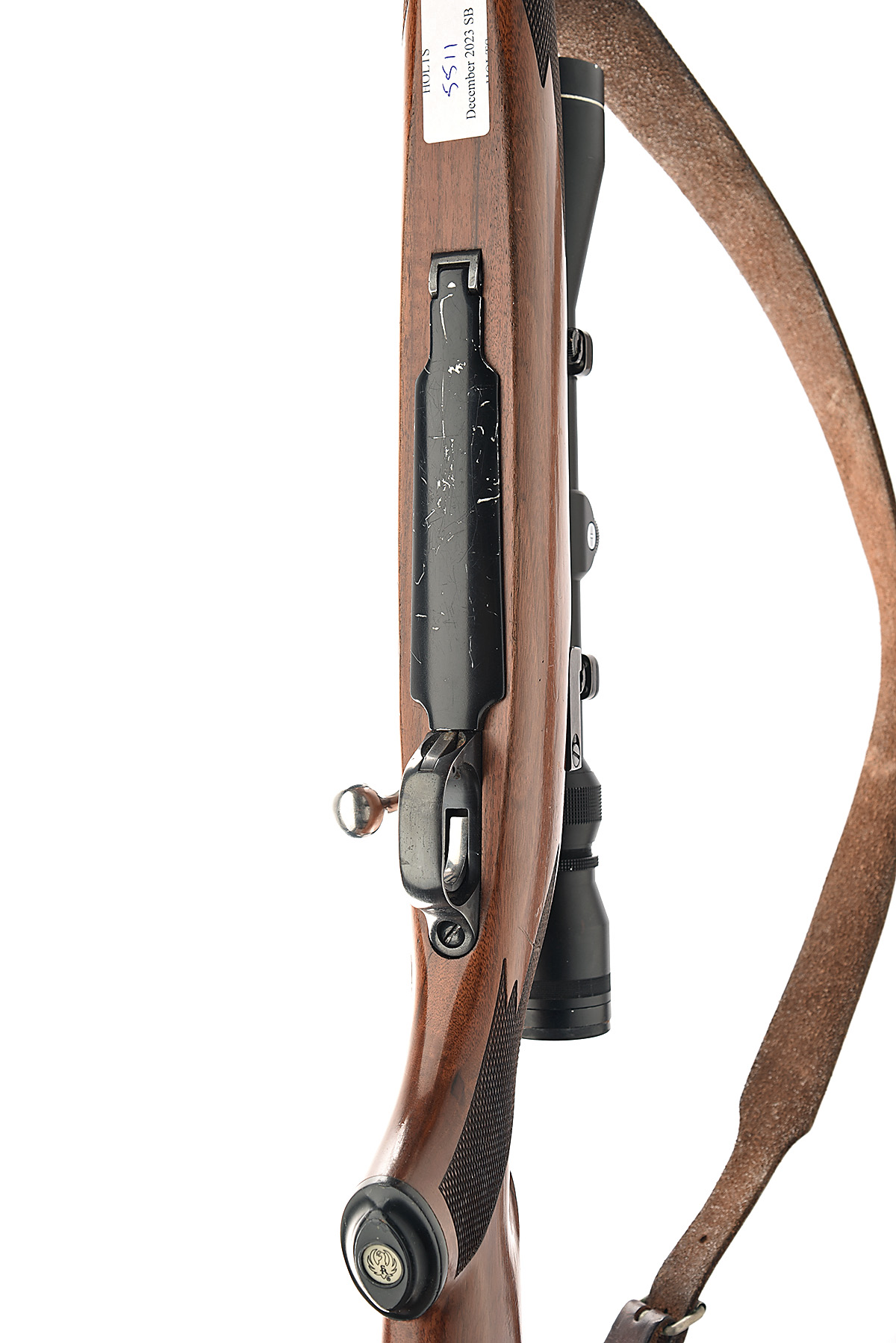 RUGER .25-06 'M77 MARK II' BOLT-MAGAZINE SPORTING RIFLE, serial no. 781-86316, circa 1993, 22 1/2in. unsighted nitro barrel, threaded for sound moderator, fitted with an Edgar Brothers 3-9x40 telescopic sight, manual safety, folding bipod, hinged floorplate, figured pistolgrip stock with recoil pad, leather sling
