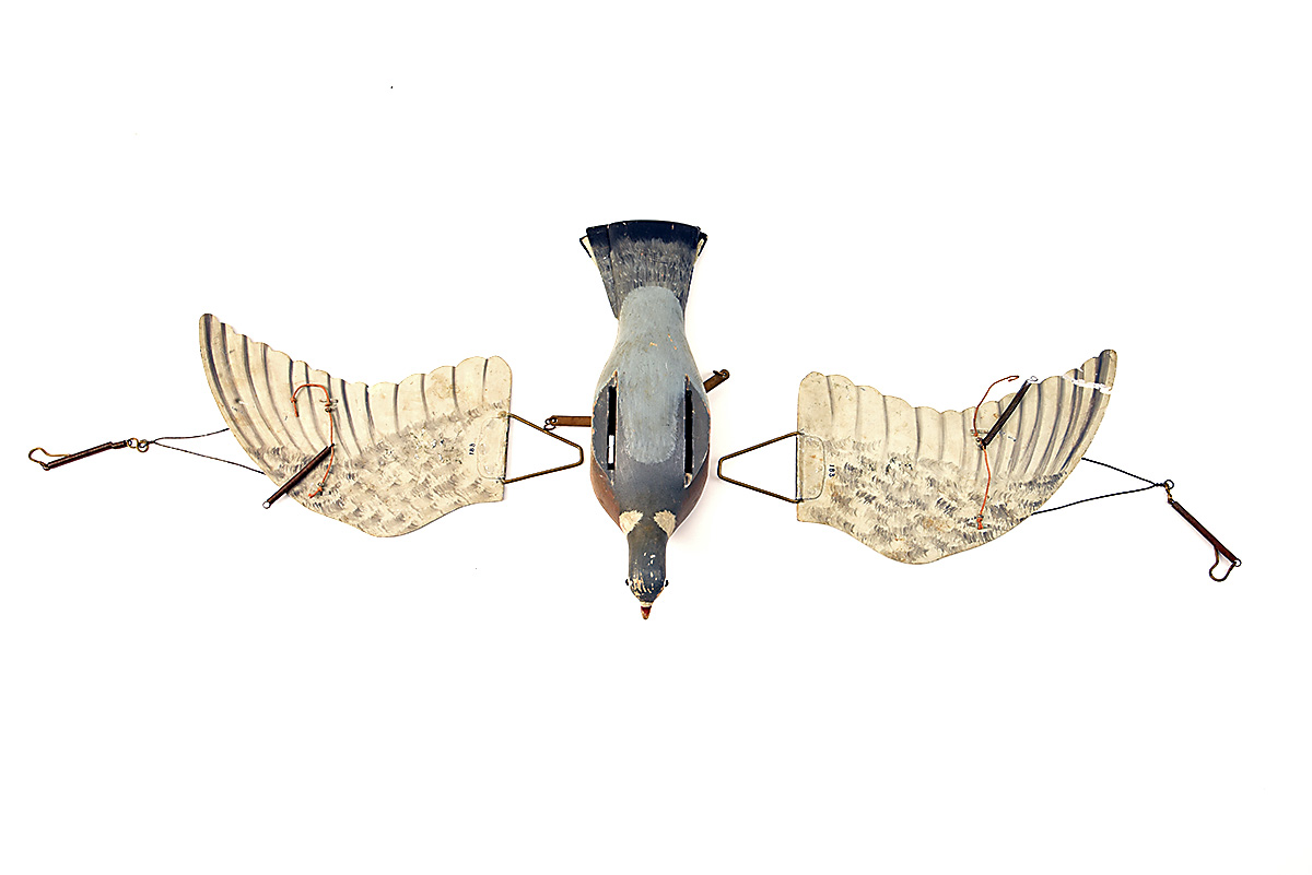 VINTAGE PIGEON DECOY FLAPPER, in is own canvas bag