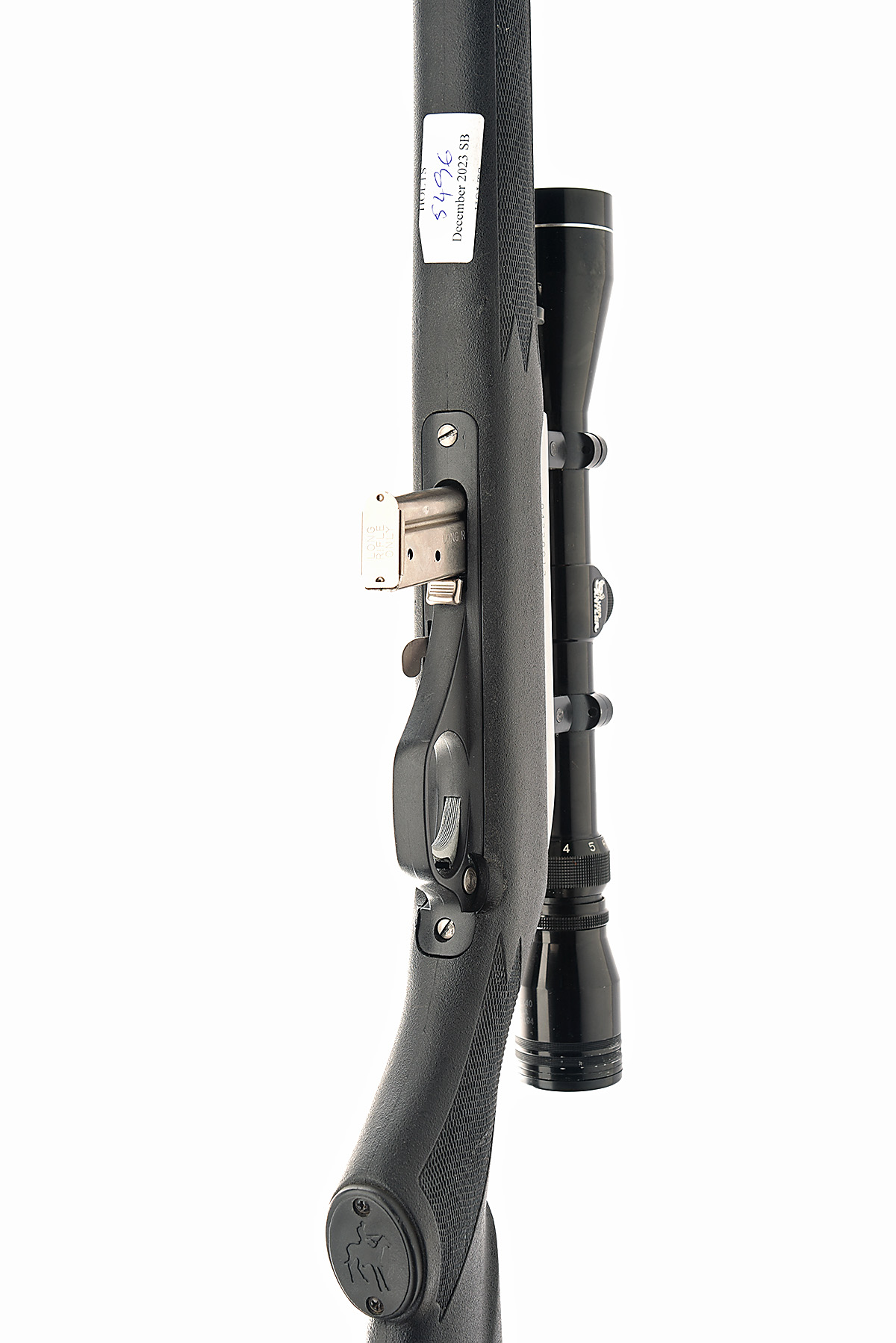 THE MARLIN FIREARMS CO. .22 L.R. 'MODEL 995SS' SELF-LOADING SPORTING RIFLE, serial no. 04220012, circa 1996, 18in. stainless nitro barrel, threaded for sound moderator, fore-sight missing, lear rear-sight,. fitted with a Tasco 3-9x 40 telescopic sight, manual safety, detachable magazine, pistolgrip synthetic stock, sling eyes