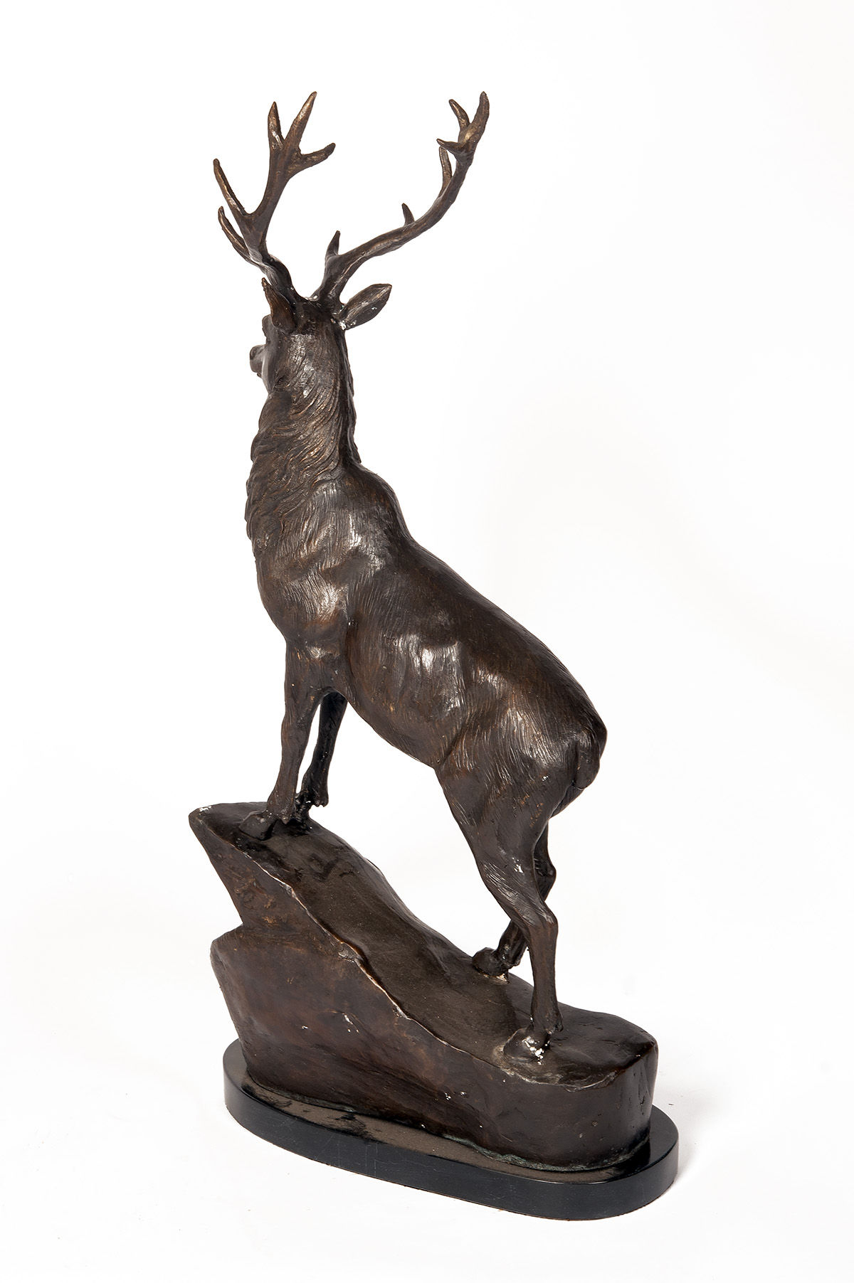 A PAIR OF BRONZE STAGS,
