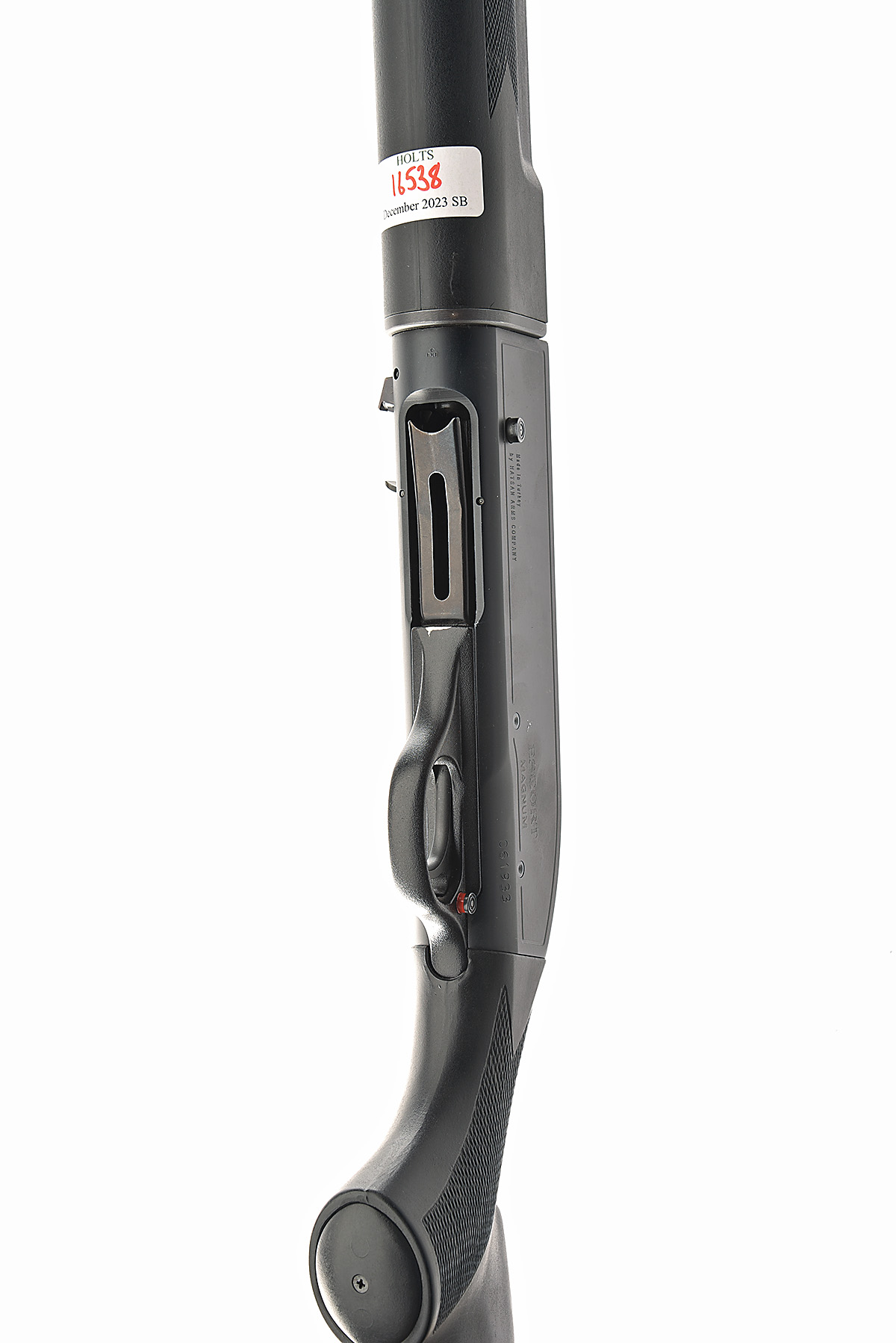 HATSAN 12-BORE (3IN.) 'ESCORT MAGNUM' SEMI-AUTO SHOTGUN, serial no. 061933, circa 2005, restricted magazine, 30in. nitro barrel with 7mm ventilated matt rib, 3in. chamber, multichoke (no spares), manual push-button safety, magazine cut-off switch, 13 3/4in. synthetic pistolgrip stock including ventilated rubber recoil pad, the whole in matt black finish
