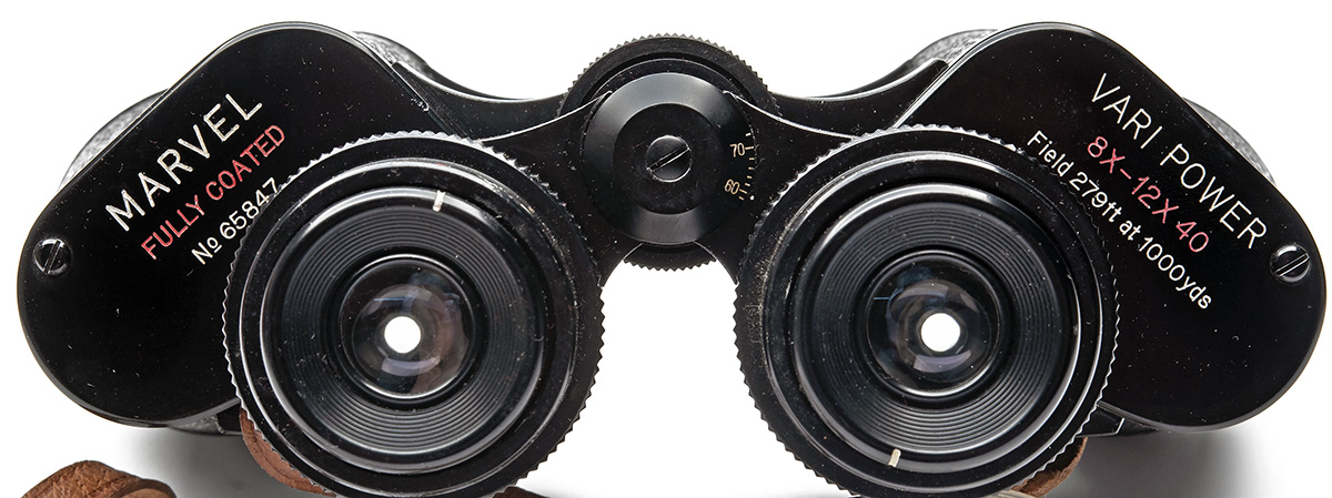 A SET OF MARVEL ZOOM VARI-POWER FULLY COATED 8X-12X40 BINOCULARS, serial no. 65847,