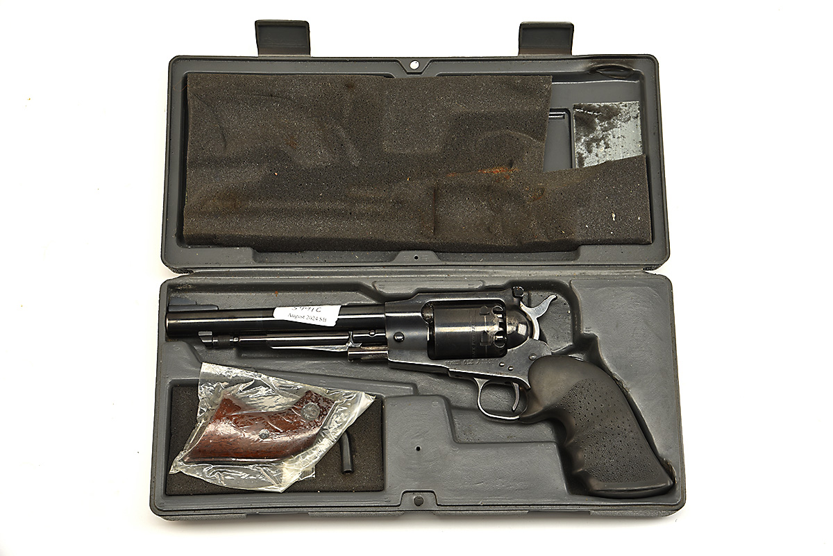 A BOXED MODERN RUGER OLD ARMY .44 PERCUSSION REVOLVER, serial no. 145-85399, with blued 7 1/2in. barrel, plain cylinder, solid frame and soft rubber Hogue grip, in its makers plastic box with its original wood grips