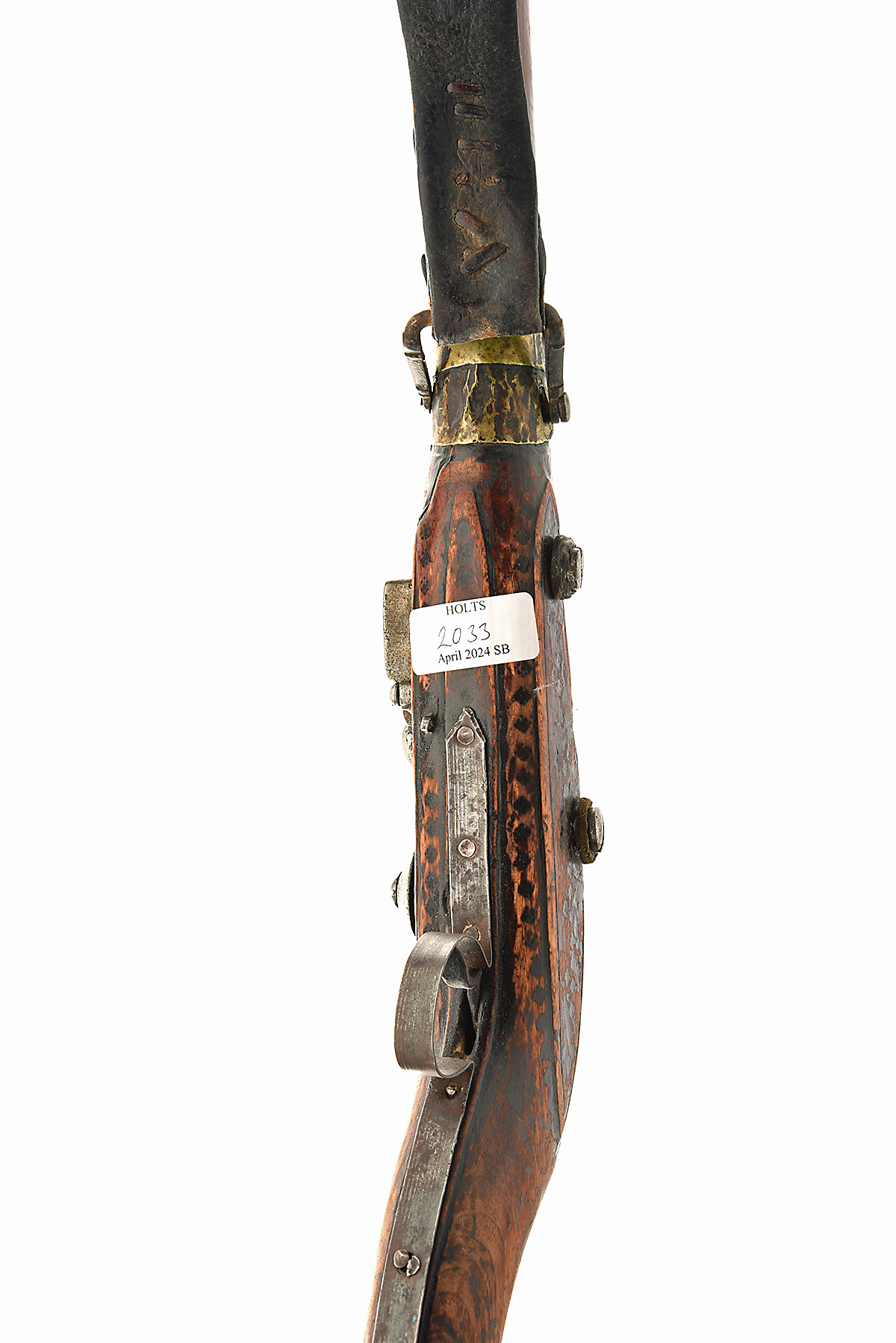 * AN INDO-PERSIAN 20-BORE FLINTLOCK CAMEL-GUN WITH EAST INDIA COMPANY LOCK SIGNED MEMORY, no visible serial number, circa 1820, with 45 1/2in. barrel swelling at the muzzle, re-purposed lock from a Brown Bess musket with East India Company heart trade-mark at tail, dated 1779 and signed 'MEMORY' (lock loose), hardwood full-stock with exaggerated curved butt, horn and bone heel-pad and mixed metal furniture, fitted with a period leather sling