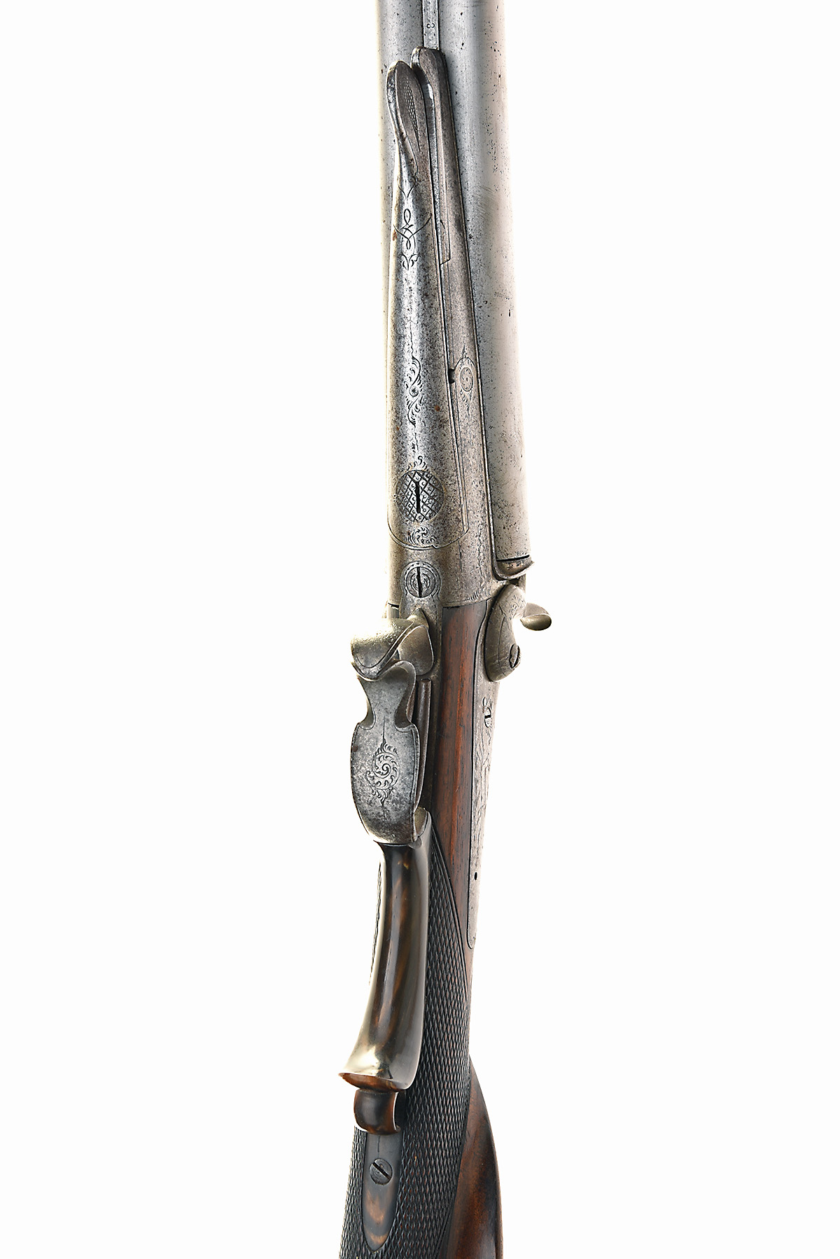 A 16-BORE PINFIRE DOUBLE-BARRELLED SPORTING-GUN, UNSIGNED, serial no. 8079,