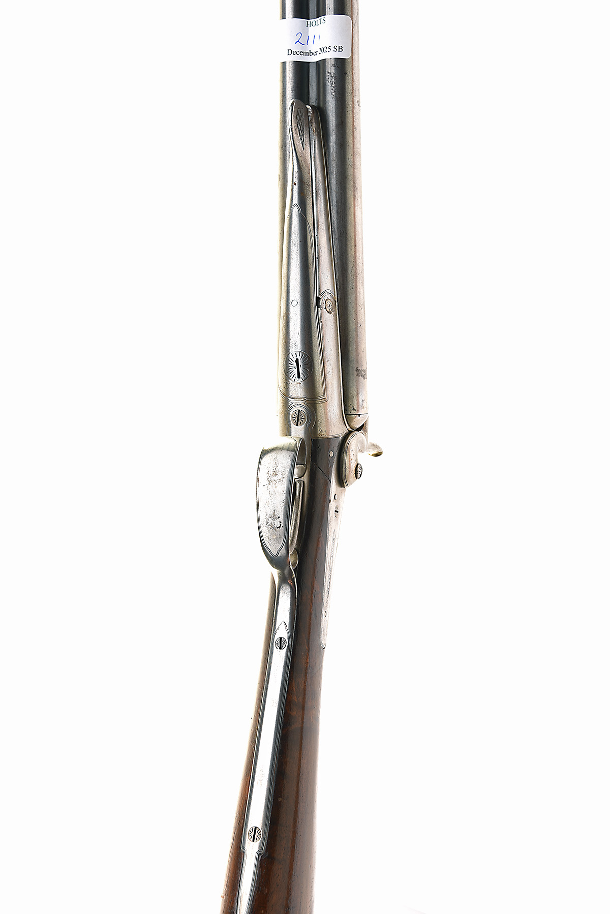 * A 12-BORE PINFIRE DOUBLE-BARRELLED SPORTING-GUN SIGNED VICTOR COLLETTE, serial no. VC37619, circa 1870, with 30in. barrels, rounded action with forward facing under-lever, walnut butt-stock (cracked at head) and captive iron fore-end