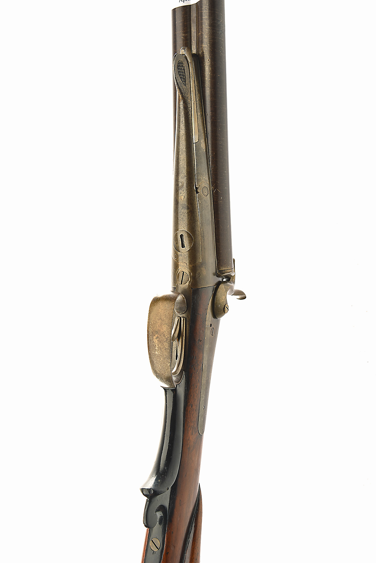 * A LEFAUCHEUX PATENT 16-BORE PINFIRE DOUBLE-BARRELLED SPORTING GUN, UNSIGNED, serial no. 8830, Belgian, with laminated 30in. barrels, plain action and locks, walnut butt-stock with raised cheek-piece and forward facing swing under-lever