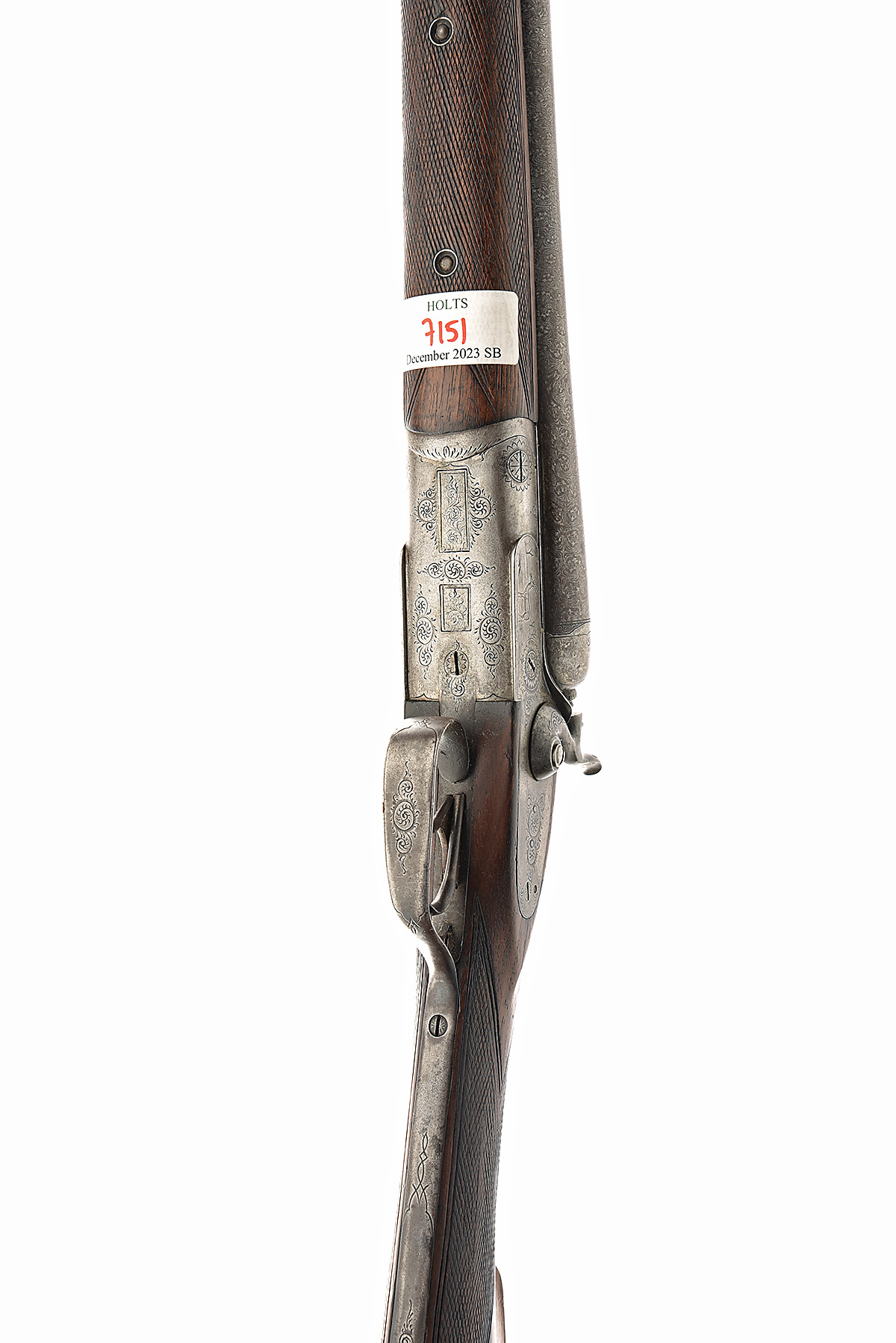 * BAYARD 12-BORE TOPLEVER HAMMERGUN, serial no. 18403, circa 1900, 27 1/2in. (70cm) black powder only fine star damascus barrels, raised file-cut rib, gold-inlaid 'DAMAS ETOILE FIN.' and with the Bayard trademark, 2 3/4in. chambers, bored approx. 1/4 and 3/4 choke, treble-grip action with side-clips, carved serpentine fences, rebounding locks, border, partial acanthus scroll and naive game scene engraving, retaining very slight traces of colour-hardening and finish, 14 1/4in. stock including buttplate, sling swivels