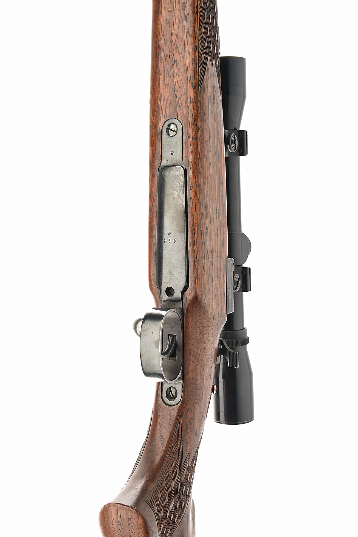 ** CARL GUSTAFS 6,5X55mm BOLT-MAGAZINE STUTZEN SPORTING RIFLE, serial no. 74201, 21in. nitro barrel, block-mounted fore-sight, tangent rear-sight, fitted with a Simmons 4x32 model 1006 telescopic sight, manual flag safety, detachable floorplate, well-figured pistolgrip full-length stock with cheekpiece, sling swivels