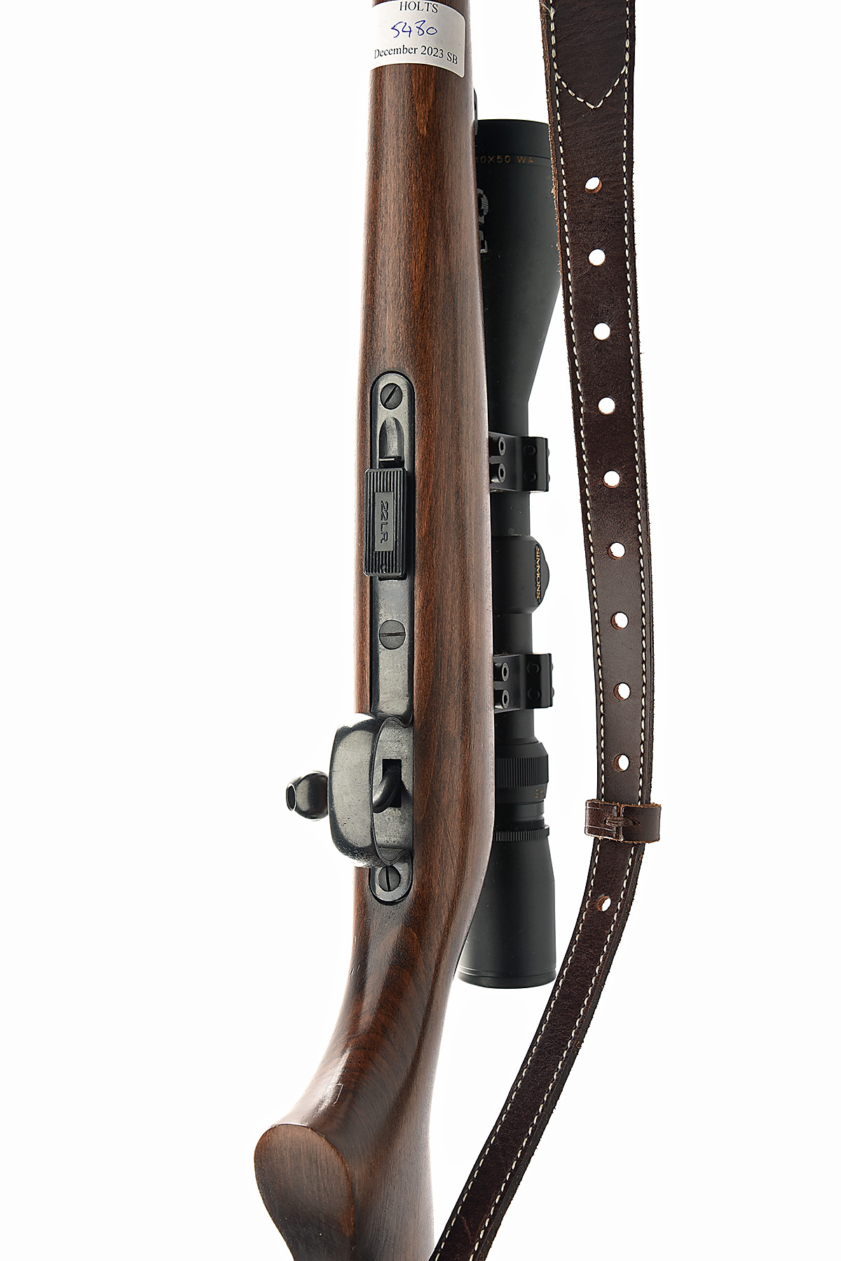 BRNO .22 L.R. '452-2E ZKM' BOLT-MAGAZINE SPORTING RIFLE, serial no. 542555, circa 1995, 24 3/4in. nitro barrel, threaded for sound moderator, hooded ramp-mounted blade fore-sight, tangent rear-sight, fitted with a Simmons 2.510x50 telescopic sight, manual safety, detachable magazine, figured pistolgrip stock, leather sling