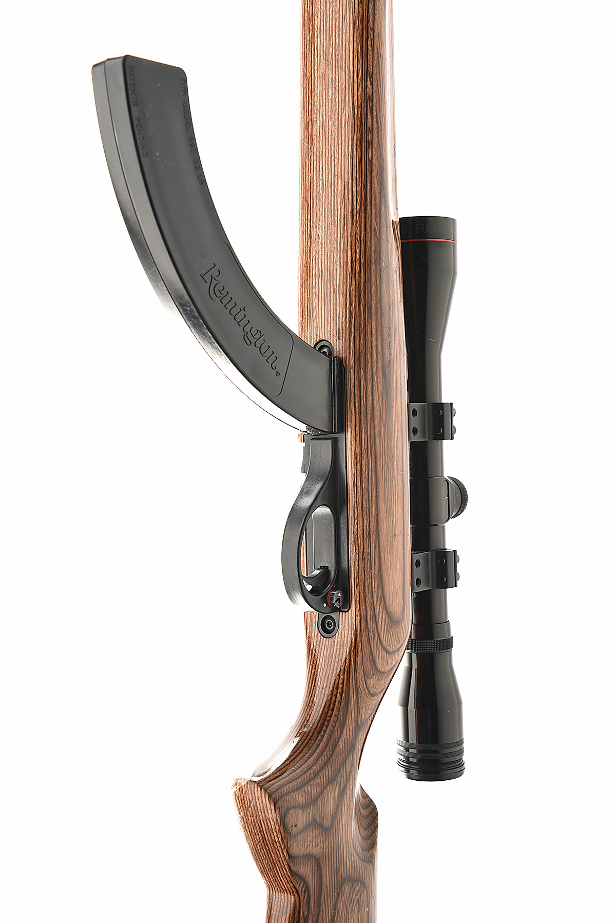 REMINGTON .22 (LONG RIFLE) 'MODEL 597' SELF-LOADING SPORTING RIFLE, serial no. A2637497, circa 2000, 20in. nitro barrel threaded for a sound moderator (with thread protector), receiver fitted with a telescopic sight, laminate pistolgrip stock, sling eyes, 14in. pull including buttplate, with two spare magazines