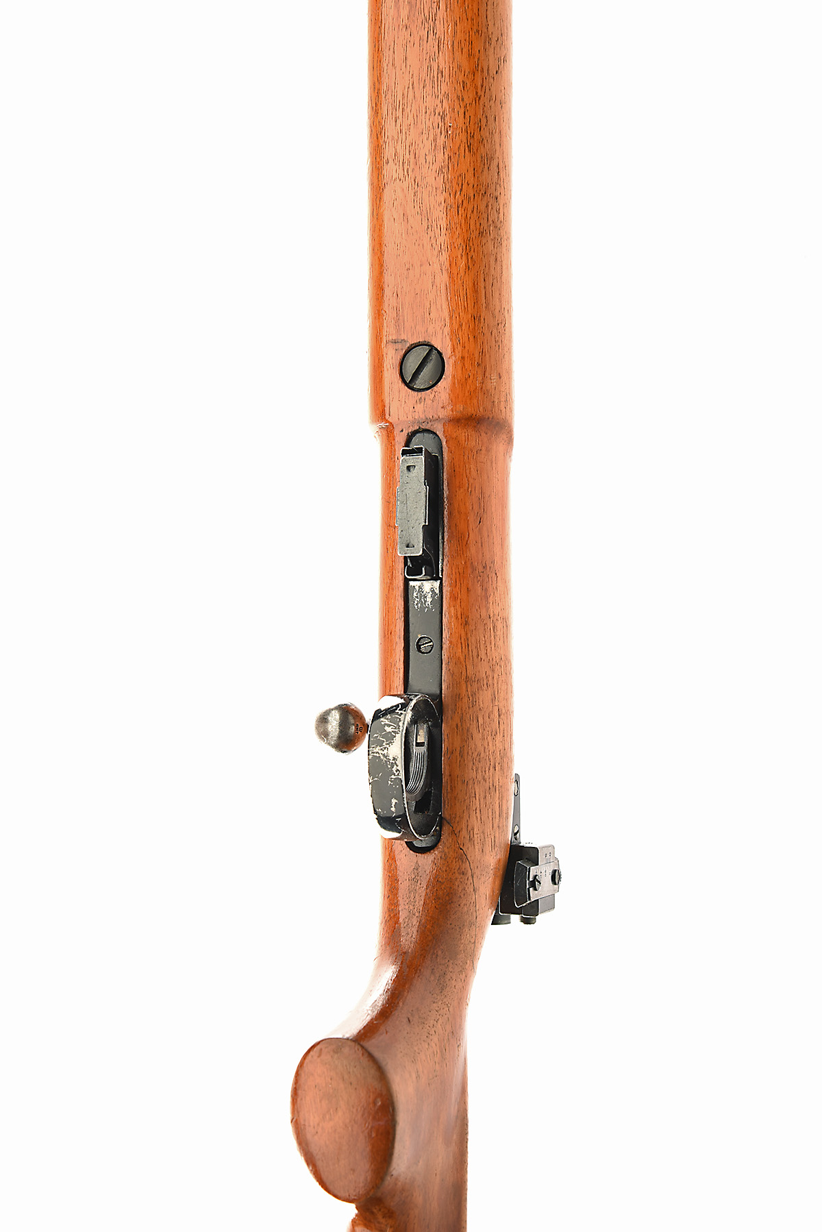 B.S.A. .22 L.R. 'CENTURY' BOLT-ACTION SINGLE-SHOT TARGET RIFLE, serial no. V3020, circa 1958, 26in. nitro barrel, tunnel fore-sight, fitted with a PH17 rear aperture sight, manual safety, detachable magazine, broken and repaired pistolgrip stock with cheekpiece