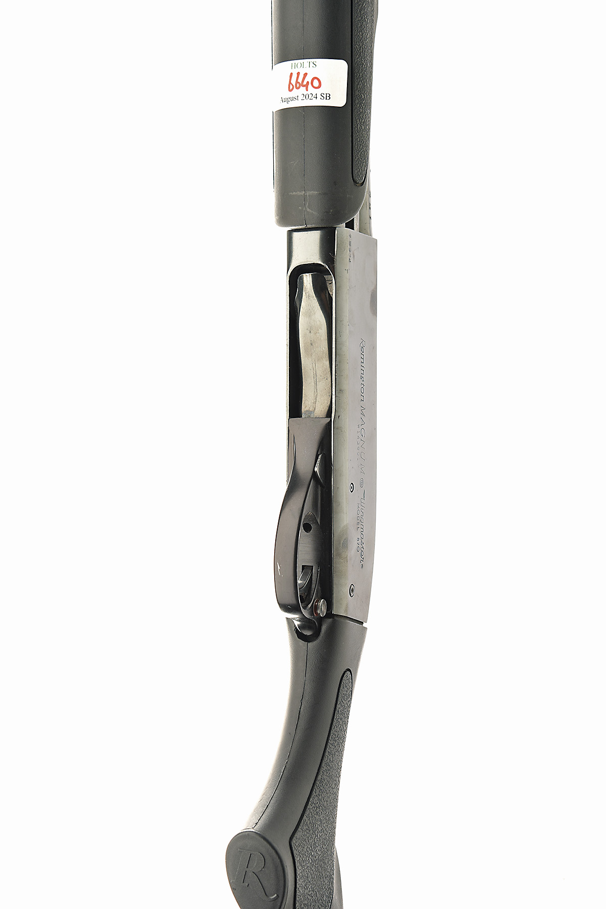REMINGTON 12-BORE (3IN.) 'WINGMASTER MODEL 870 - MAGNUM' PUMP-ACTION SHOTGUN, serial no. W143601M, for 1984, restricted magazine, 30in. nitro barrel with 8mm ventilated matt rib, 3in. chamber, bored approx. full choke, manual push-button safety, 13 3/4in. synthetic pistolgrip stock including rubber recoil pad, the whole in matt black finish, weight 7lb 5oz.