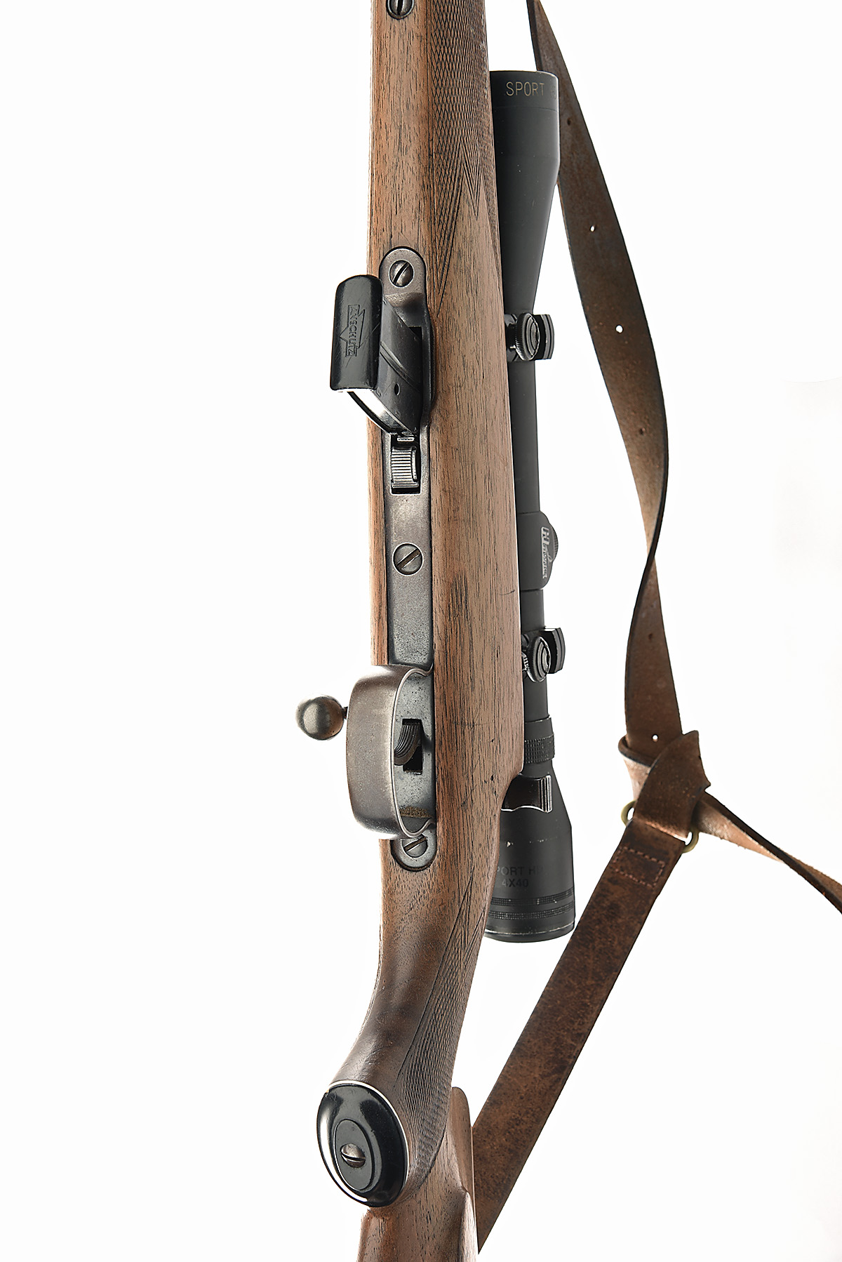 J.G ANSCHUTZ .22 L.R. 'MODEL 1420' BOLT-MAGAZINE SPORTING RIFLE, serial no. 235212, circa 1972, 18in. nitro barrel, threaded for sound moderator, sights missing, fitted with a Hawke 4x40 telescopic sight, manual safety, detachable magazine, figured pistolgrip stock with cheekpiece, leather sling