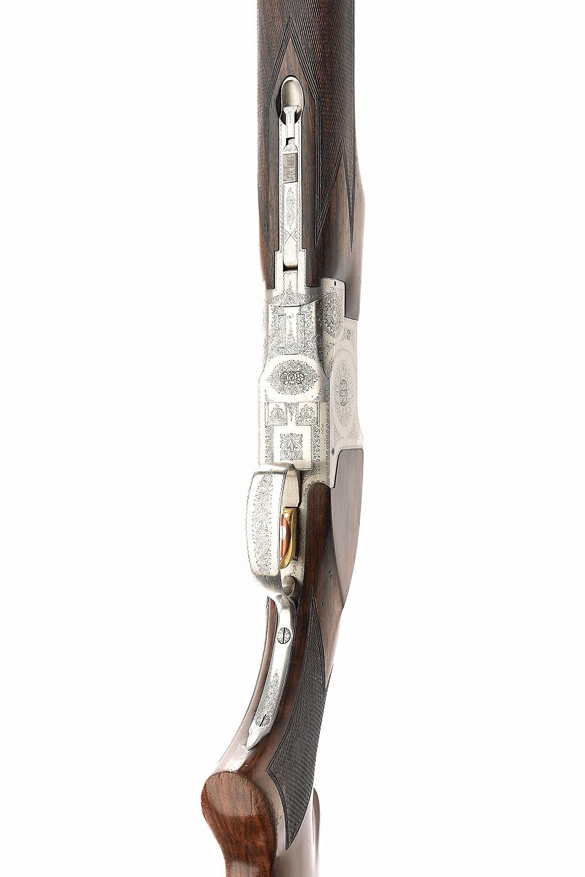 FABRIQUE NATIONALE 12-BORE 'B1' SINGLE-TRIGGER OVER AND UNDER EJECTOR, serial no. 63537 S77, dated 1977, 29 3/4in. nitro barrels with 16mm ventilated matt top-rib, 2 3/4in. chambers, multichokes (no spares), hold-open toplever, manual safety with integral barrel selector switch, gold-washed single trigger, border and partial acanthus scroll engraving, 14 1/4in. pistolgrip stock including 1in. ventilated rubber recoil pad, weight 7lb. 13oz.