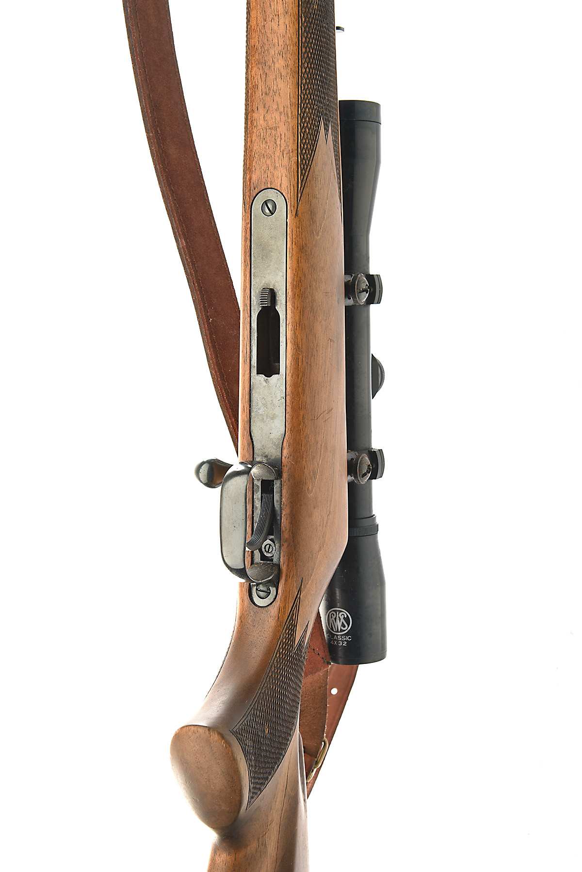 MAUSER .22 L.R. 'MOD 201' BOLT-MAGAZINE SPORTING RIFLE, serial no. 109480, circa 1989, 22in. nitro barrel, threaded for sound moderator, ramp-mounted blade fore-sight, leaf rear-sight, fitted with a RWS classic 4x32 telescopic sight, manual safety, detachable magazine missing, figured pistolgrip stock with recoil pad and cheekpiece, leather sling