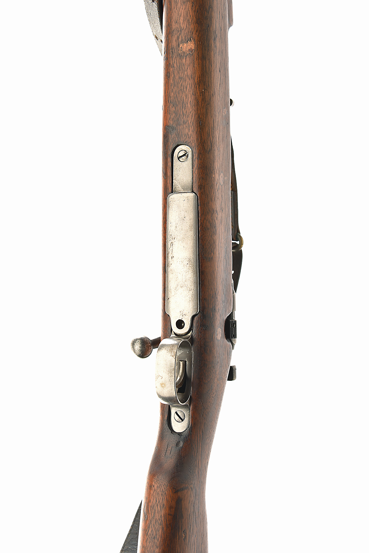 A RARE SPRINGFIELD ARMORY .30-06 (SPRG.) 'MODEL 1903 MKI' BOLT-MAGAZINE SERVICE RIFLE, serial no. 1119494, for 1919, 24in. nitro barrel, ramped blade fore-sight, adjustable tangent rear sight, receiver with ejection port to left-hand side for Pedersen device, manual flag safety, magazine cut-off switch, receiver ring marked 'U.S. SPRINGFIELD ARMORY. MODEL 1903. MARK 1', semi-pistolgrip three-quarter stock (some repairs), with sling swivels, fitted with a period leather sling, 13in. pull including steel buttplate