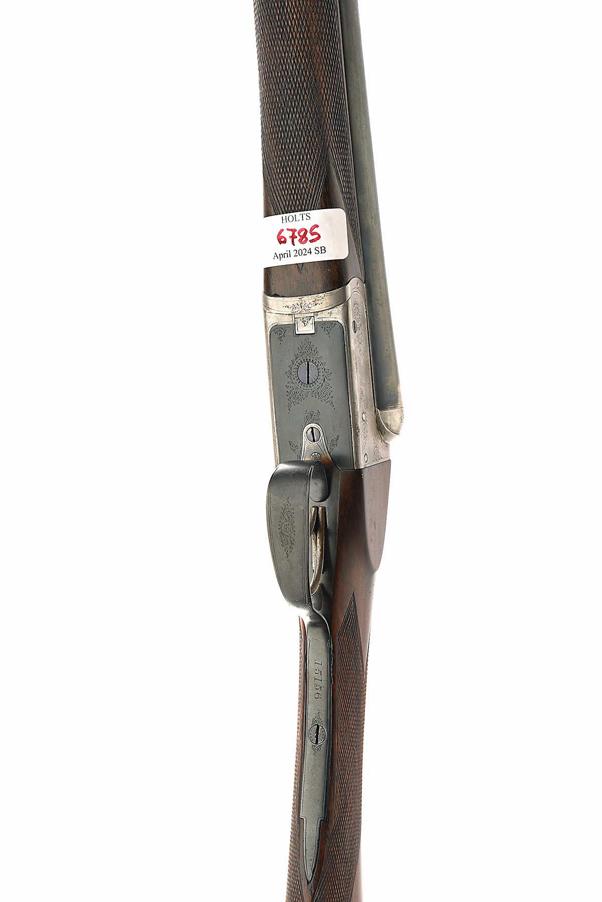WILLIAM EVANS 12-BORE BOXLOCK EJECTOR, serial no 15156, circa 1927, 28in. nitro barrels, 2 1/2in. chambers, bored approx. imp. cyl. and 1/2 choke, treble-grip action, removable striker discs, automatic safety, border and partial scroll engraving, 15 1/4in. stock including 3/4in. leather-covered recoil pad, weight 6lb. 9oz.