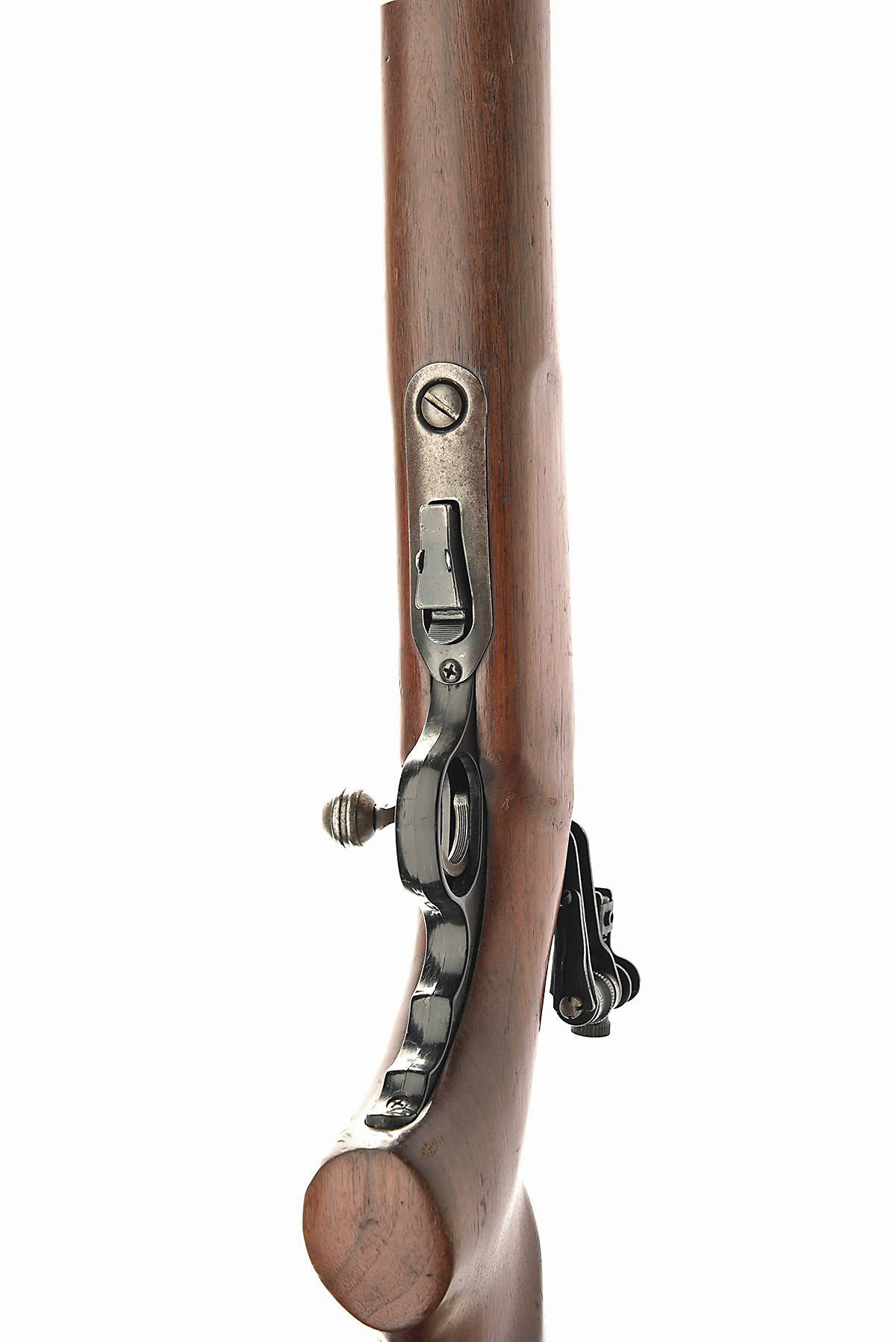 O.F. MOSSBERG & SONS .22 L.R. 'MODEL 144' BOLT-MAGAZINE TARGET RIFLE, serial no. 17925, circa 1950, 26in. nitro reproved heavy barrel (in 2024), ramped fore-sight with flip up aperture, receiver fitted with a Mossberg S-130 folding aperture rear sight, manual safety, blued finish, the bolt retaining slight traces of colour-hardening and finish, detachable magazine, pistolgrip halfstock with underslung accessory rail, sling swivels, cheekpiece, 13 1/2in. pull, no buttplate