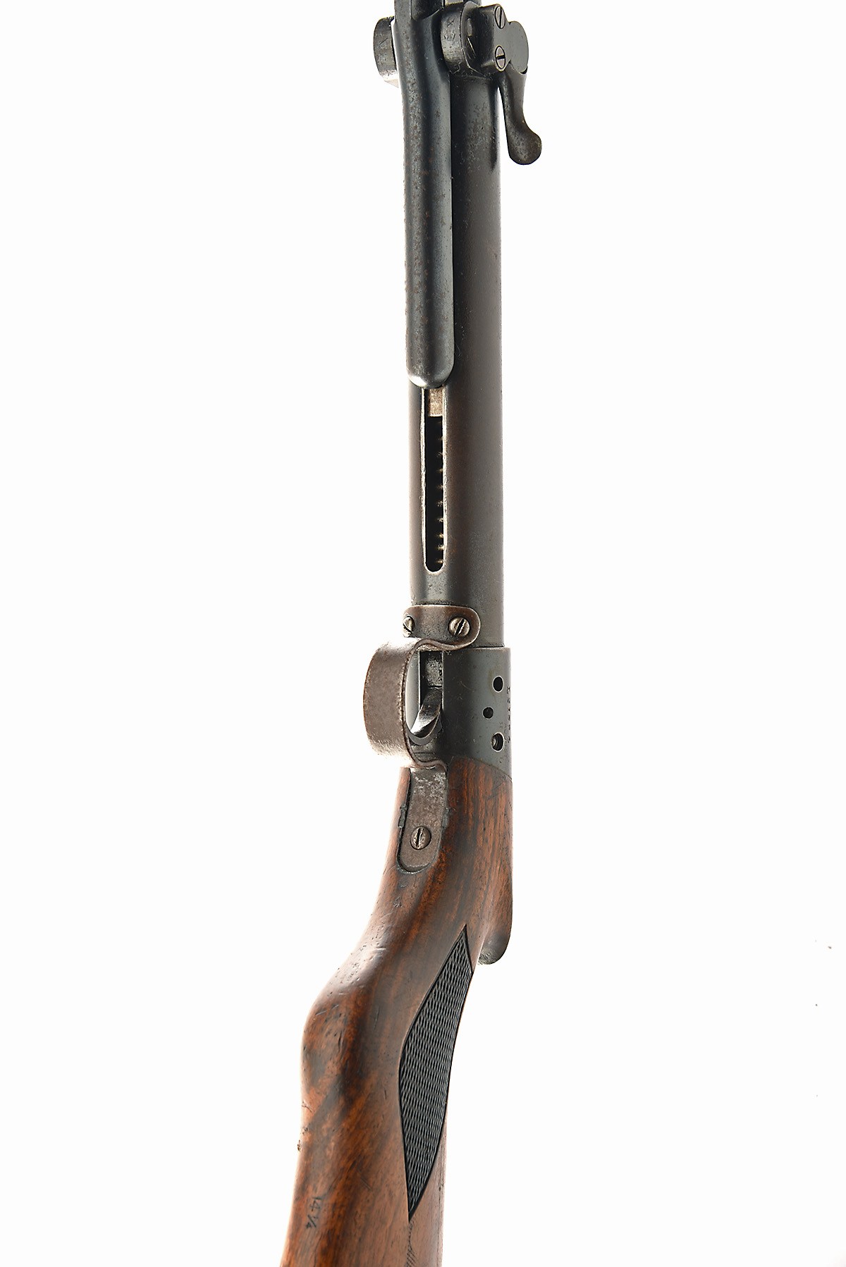 A .177 BSA LIGHT or LADIES PATTERN UNDER-LEVER AIR-RIFLE, serial no. L21594, for 1923, with sighted 17in. barrel, tap-action breech, plain air-chamber (faint traces of etching visible), walnut saw-handled butt-stock (chipped at toe) and push button release under-lever, traces of finish