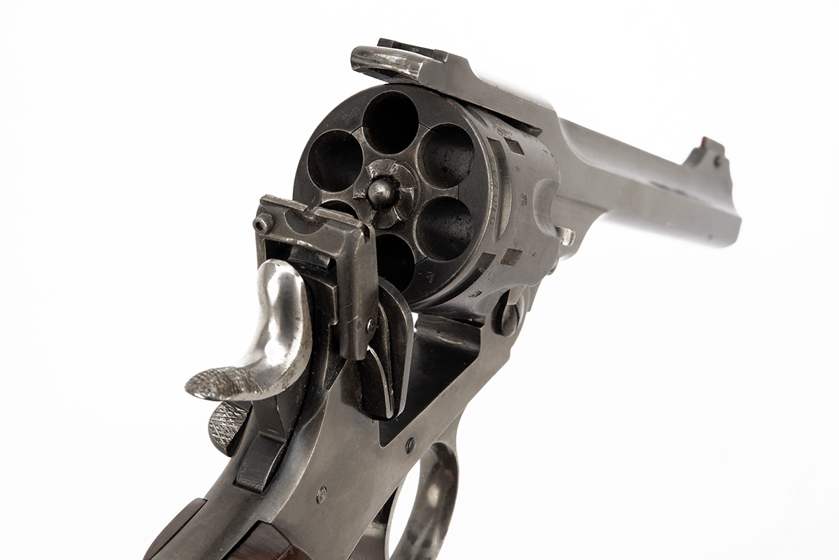 A WEBLEY & SCOTT .455 CUSTOM MKVI REVOLVER, serial no. 297070, dated for 1917, with re-blued 6in. barrel, fluted cylinder, break-open frame and smooth walnut right-hand birdshead grips, the frame butt reprofiled, refinished