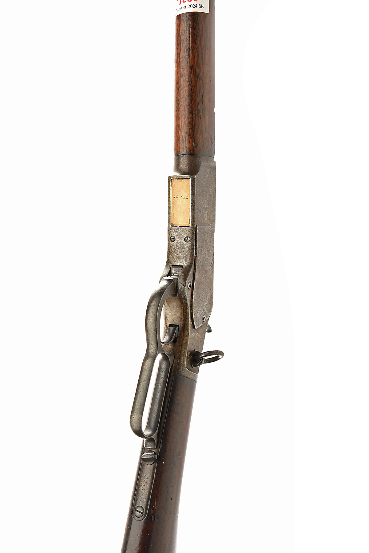 WINCHESTER REPEATING ARMS CO. .44-40 (W.C.F.) 'MODEL 1873' LEVER-ACTION REPEATING CARBINE, serial no. 248609B, for 1887, 20in. nitro reproved barrel (in 2024), with blade fore-sight, adjustable open rear sight, receiver with sliding dust cover, sprung loading gate, hammer with half-cock safety, saddle ring, patinated finish overall, 12 3/4in. walnut buttstock with steel carbine heelplate with central trapdoor, weight 7lb. 4oz.