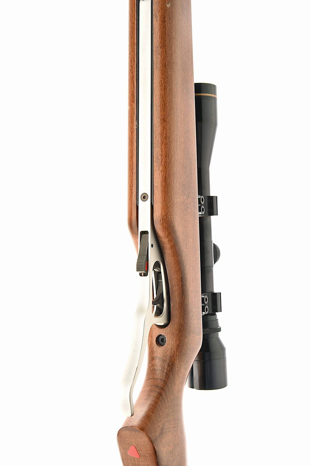 A SCARCE .177 UNDER-LEVER RUTTEN WINSTAR MACH-1 AIR-RIFLE, serial no. RO1409, with blued 20 1/2in. barrel including sound-moderator, flip-up breech, blued air-chamber, beech half-stock and alloy reverse hinged cocking lever also forming the trigger guard, some marks but generally collector's external condition and fitted with a Shrike Optical 4x40 telescopic sight