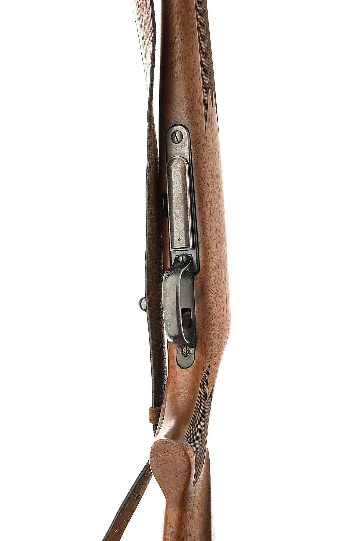 KRICO .243 WIN. BOLT-MAGAZINE SPORTING RIFLE, serial no. 138735, dated 1989, 24in. nitro barrel, threaded for sound moderator, sights missing, scope rail, manual safety, detachable magazine, figured pistolgrip stock with recoil pad and cheekpiece, leather sling