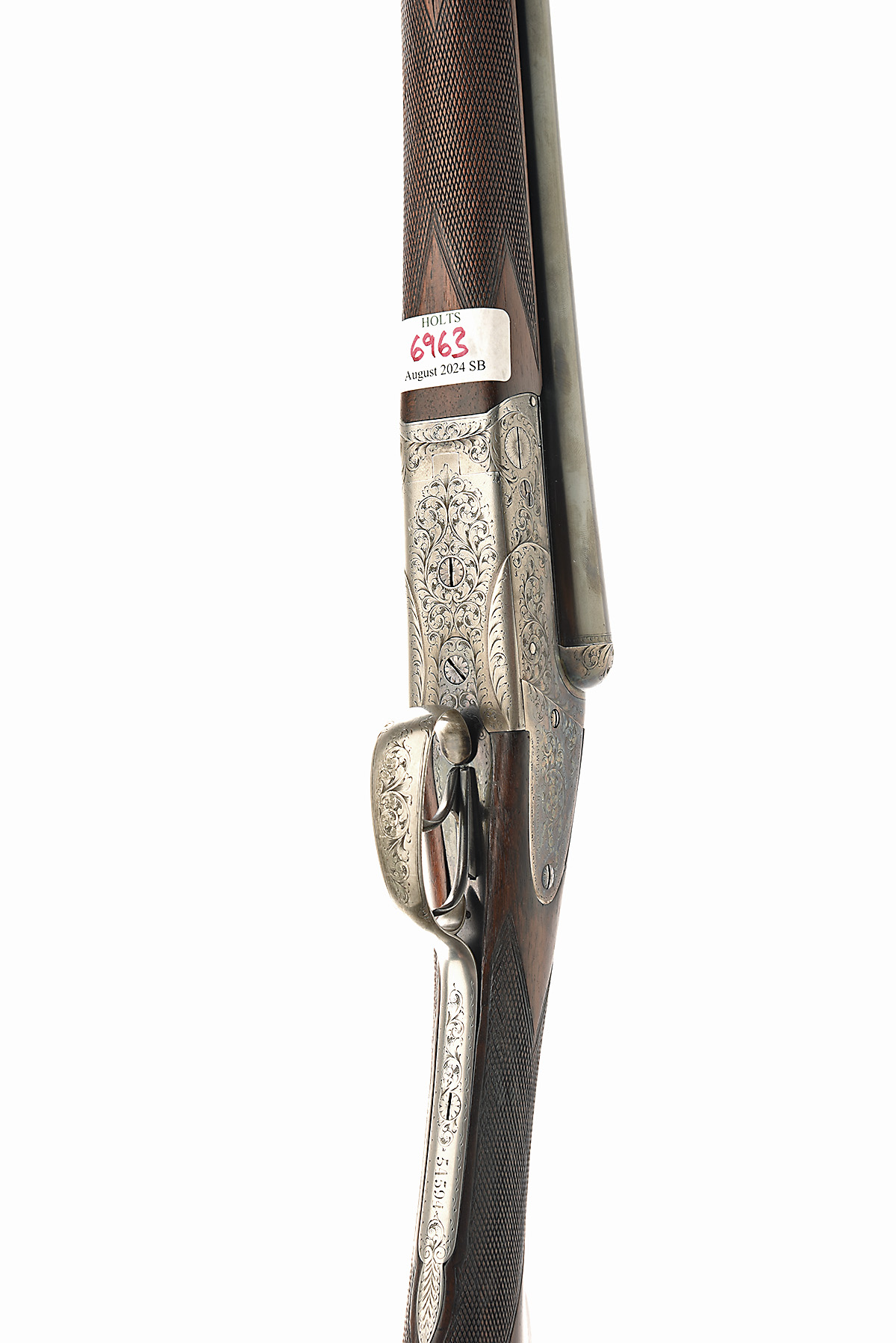 COGSWELL & HARRISON 12-BORE SIDEPLATED BOXLOCK EJECTOR, serial no. 54594, circa 1923, 30in. nitro barrels, rib engraved '2' and 'COGSWELL & HARRISON LTD. 168 PICCADILLY & 226 STRAND. LONDON.', 2 1/2in. chambers, bored approx. imp. cyl. and 1/2 choke, treble-grip action with hidden third bite, automatic safety with engraved 'SAFE' detail, border and acanthus scroll engraving, the decorative 'strengthening plates' engraved en suite, retaining traces of original colour-hardening and finish, 15 1/2in. stock including 1 1/4in. wooden extension, weight 6lb. 10oz.