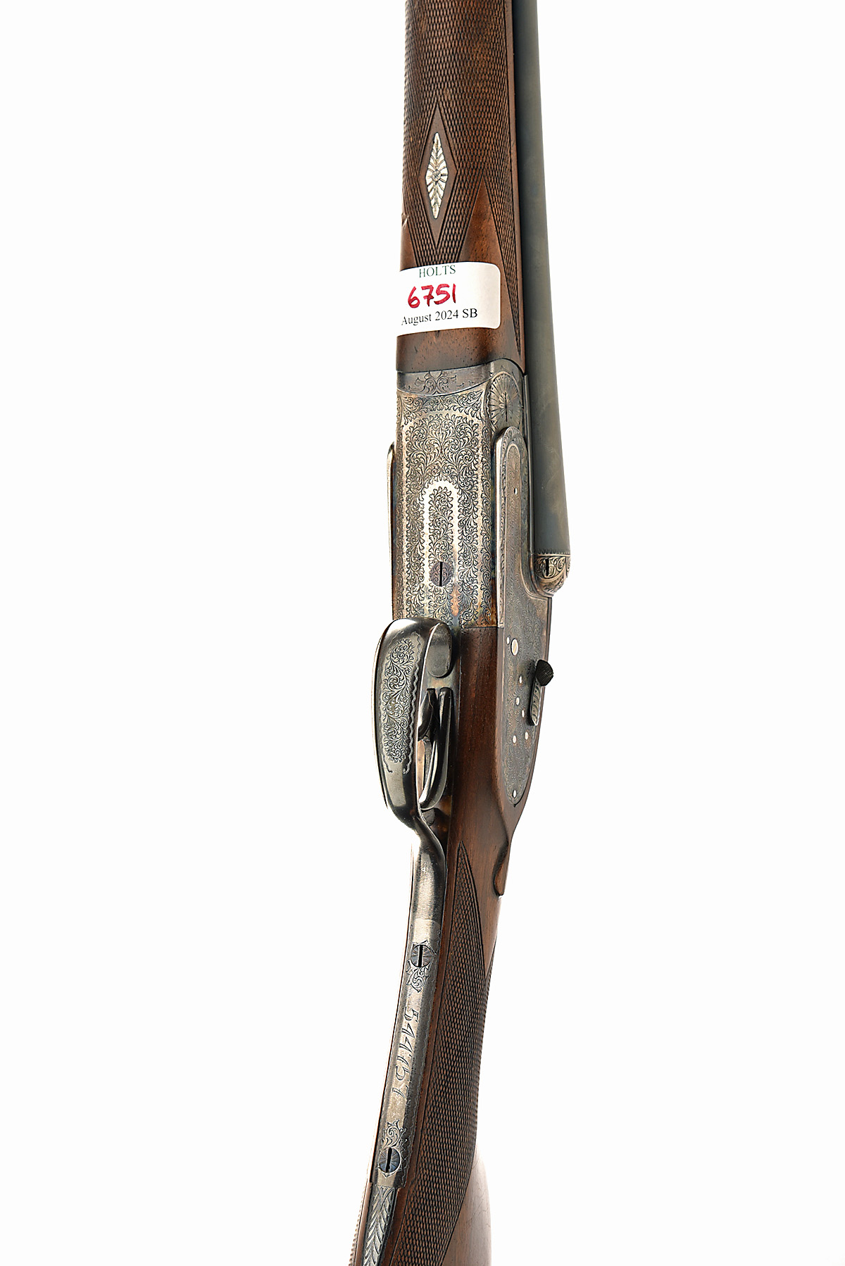 AYA 12-BORE 'NO.2 MODEL' HAND-DETACHABLE SIDELOCK EJECTOR, serial no. 544757, dated 1979, 26in. nitro barrels, 2 3/4in. chambers, bored approx. imp. cyl. and 1/4 choke, removable striker discs, automatic safety, hand-detachable lockplates, gold-inlaid cocking-indicators, articulated front trigger, rolled-edge triggerguard, border and acanthus scroll engraving, retaining much original colour-hardening and finish, 15 1/2in. stock including 1in. rubber recoil pad, weight 6lb. 12oz.