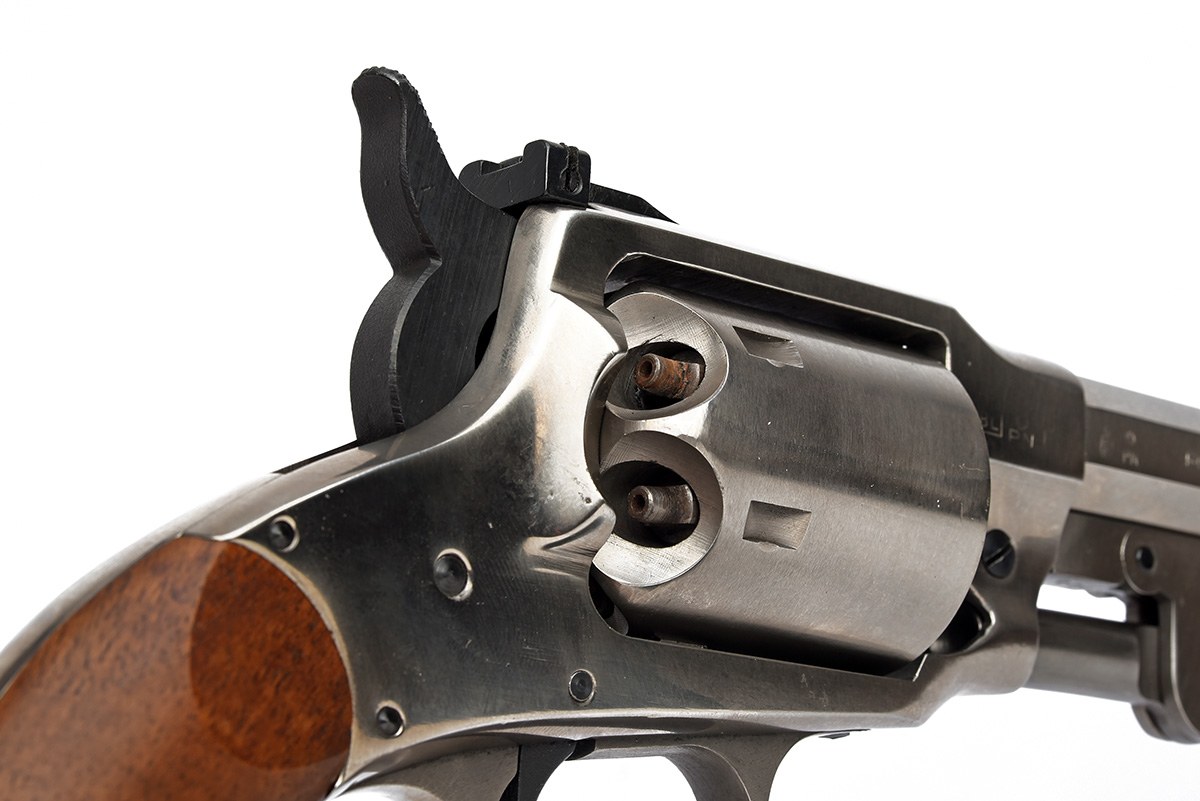 A REPRODUCTION EUROARMS .44 PERCUSSION ROGERS & SPENCER STAINLESS TARGET REVOLVER, serial no. 024903,