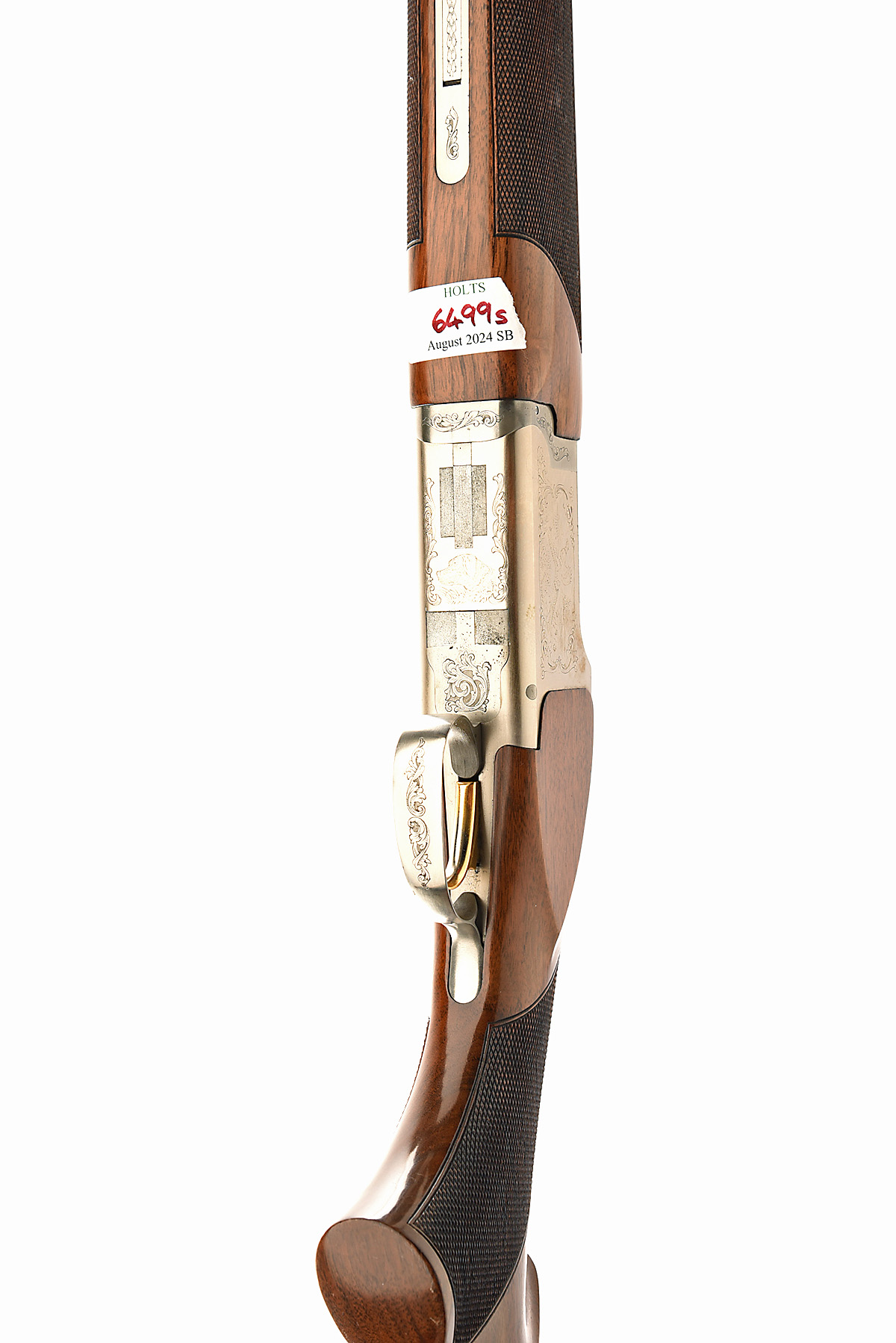 BROWNING 12-BORE 'GRADE 425' SINGLE-TRIGGER OVER AND UNDER EJECTOR, serial no. 38975MZ, dated 2001, 26in. nitro barrels with 6mm ventilated matt top-rib, 2 3/4in. chambers, bored approx. imp. cyl. and 1/4 choke, hold-open toplever, automatic safety with integral barrel selector switch, gold-washed single trigger, acanthus-bordered game scene vignettes, silver finish, 14 1/4in. pistolgrip stock including 7/8in. rubber recoil pad, weight 6lb. 7oz., in a slip