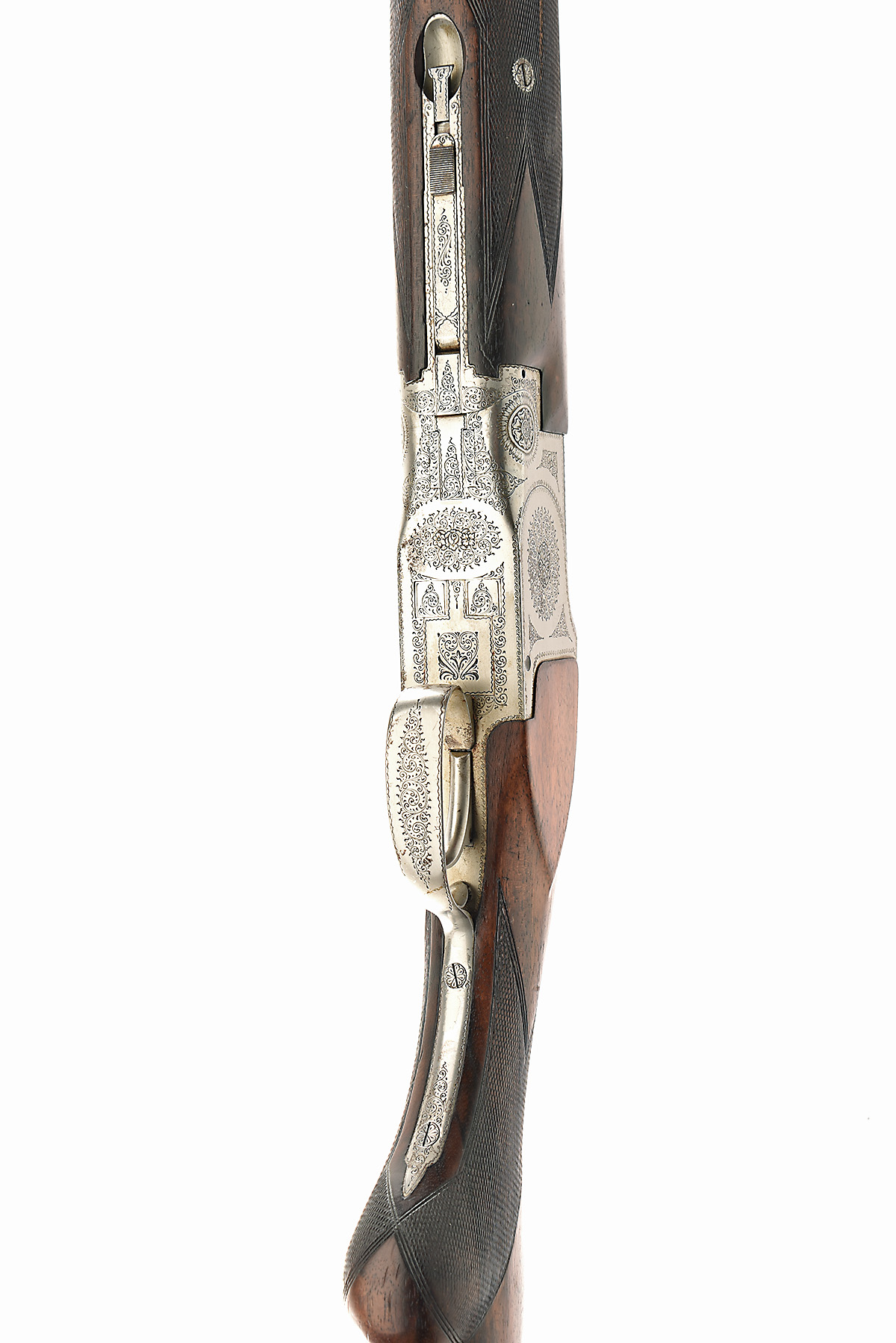 FABRIQUE NATIONALE 12-BORE 'B1' SINGLE-TRIGGER OVER AND UNDER EJECTOR, serial no. 92582, for 1962, 28in. nitro barrels with 8mm ventilated matt top-rib, 2 1/2in. chambers, bored approx. 1/2 and full choke, hold-open toplever, manual safety with integral barrel selector switch, border and partial scroll engraving, 14 1/4in. semi-pistolgrip stock including buttplate, weight 7lb. 8oz.