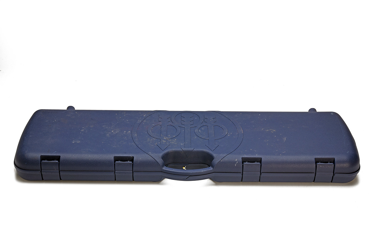 fitted for 28 1/2in. barrels, internal partitions lined with oak, maroon baize lining, the lid with stitched leather Ray Pavon trade label, brass lock (with keys); together with a Beretta single universal case