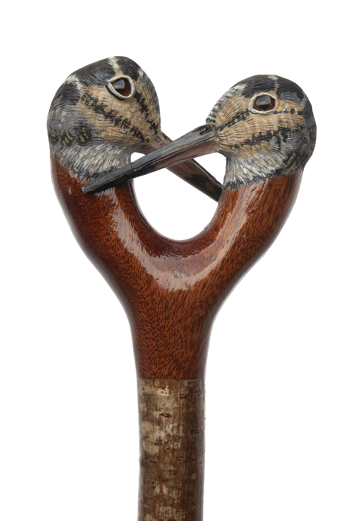 with ashwood type shaft, the top carved in the form of double woodcock heads, measuring approx. 49in. in length