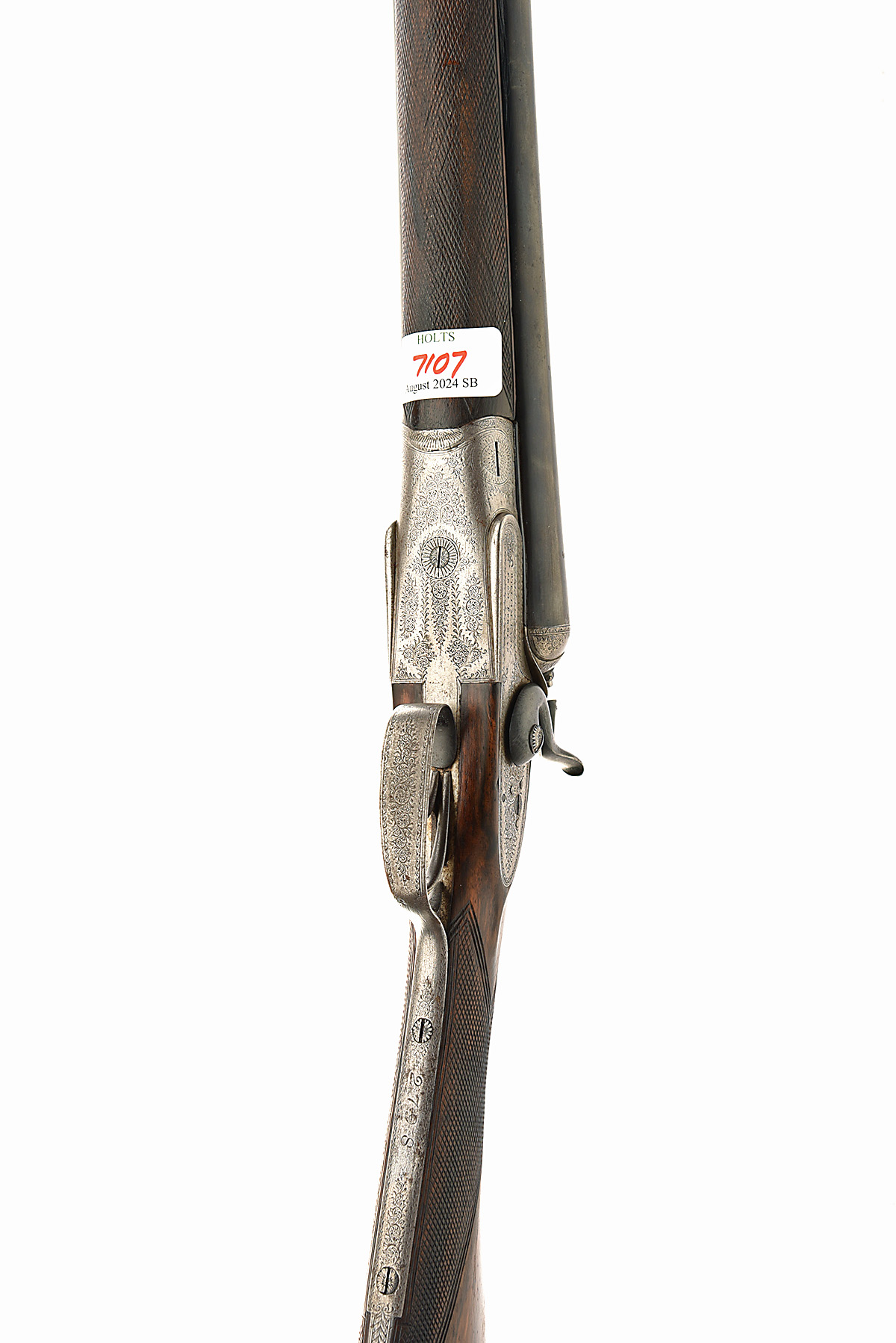 WILLIAM EVANS FROM PURDEY'S 12-BORE TOPLEVER HAMMERGUN, serial no. 2798, for 1894, 27 5/8in. (70cm) sleeved nitro barrels, 2 1/2in. chambers, bored approx. imp. cyl. choke in both, treble-grip action, carved percussion fences, rebounding sidelocks, on hammer replaced, border and acanthus scroll engraving, 14 3/4in. figured stock including 1/2in. buttplate, weight 6lb. 10oz.