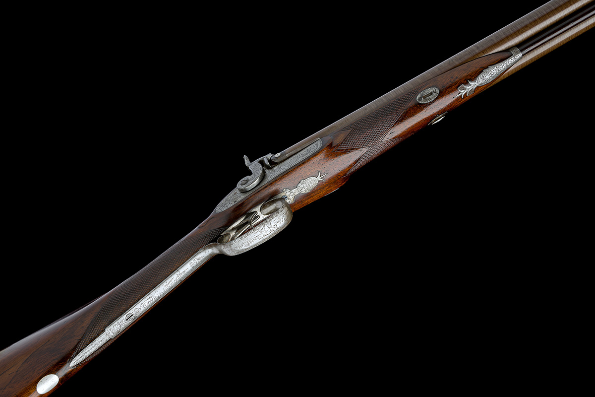 A 16-BORE PERCUSSION DOUBLE-BARRELLED SPORTING GUN, serial no. 1405,