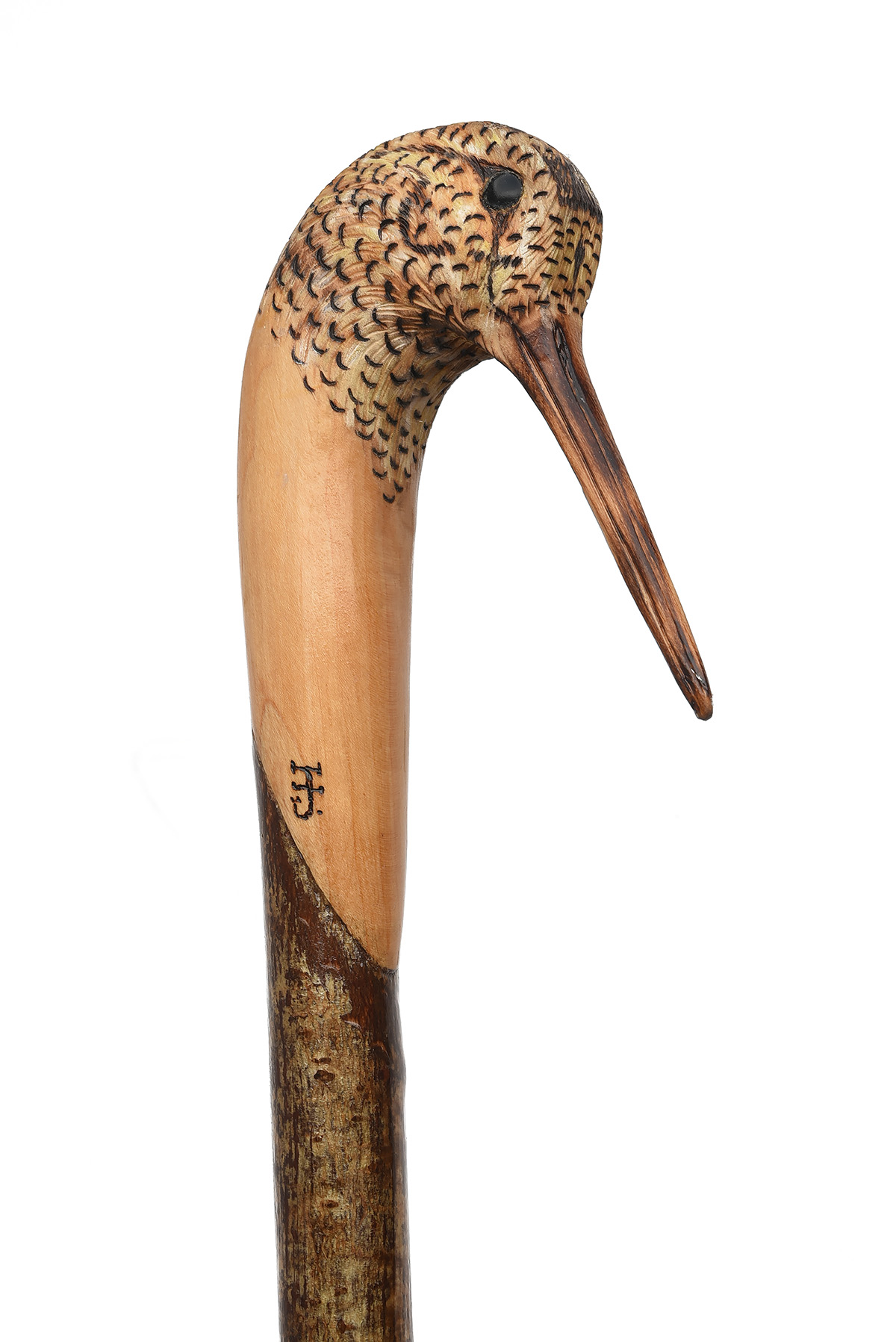 with hardwood shaft, the top carved and painted in the form of a woodcock head, measuring approx. 48 1/2in. in length
