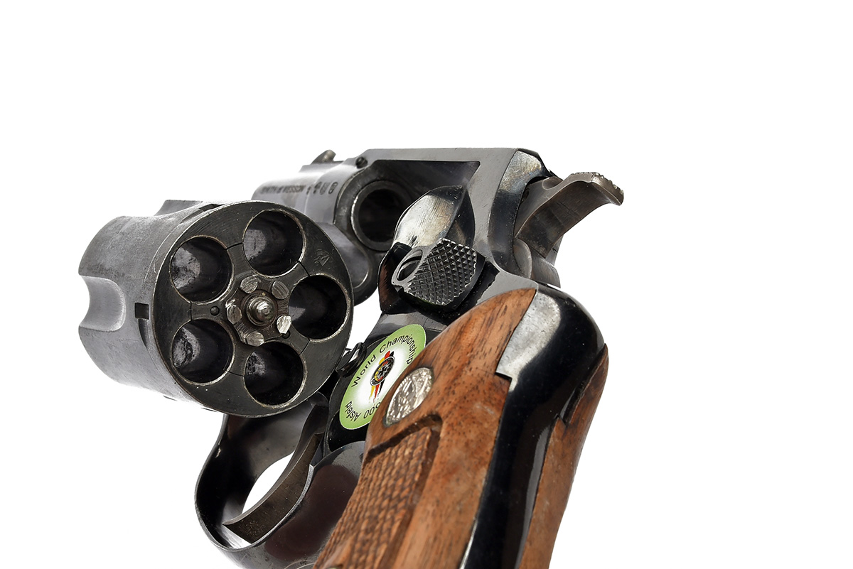 A SMITH & WESSON .38 (SPL) MODEL 36 POCKET-REVOLVER, serial no. 440903, with sighted 1 7/8in. barrel, blued frame with swing-out five-shot fluted cylinder and chequered wood grips