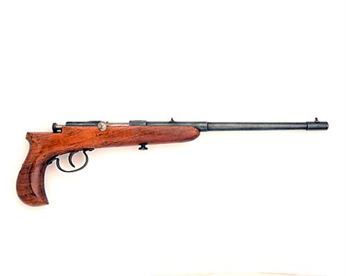 A 9mm (GLATT) RIM-FIRE BOLT-ACTION SHOT PISTOL SIGNED 'JGA', serial no. 195111, made in Germany by 'Anschutz' circa 1930, with 12in. blued sighted barrel, blued receiver, walnut stock.