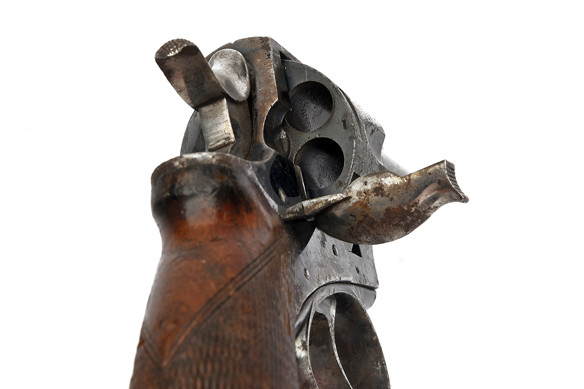 * A .450 WEBLEY RIC-TYPE REVOLVER SIGNED A.P. WALSHE, KIMBERLEY, serial no. 1067, circa 1885, with ovoid 3in. barrel, solid stepped frame, six-shot fluted cylinder, double action mechanism and chequered walnut one-piece grip with lanyard ring at heel, fair amount of original finish