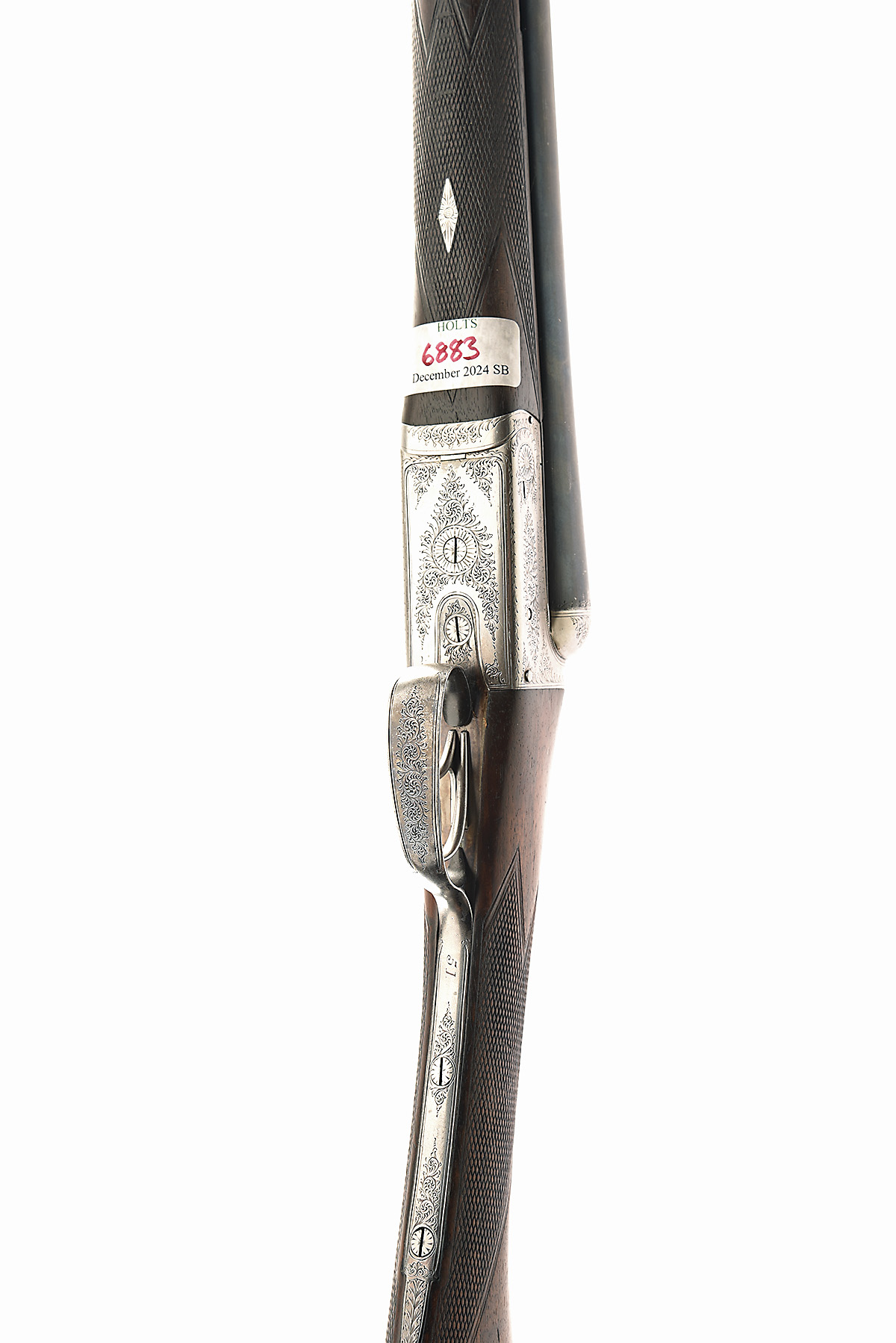 JAMES HOOTON 12-BORE BOXLOCK EJECTOR, serial no. 51, circa 1920, 30in. nitro barrels, 2 1/2in. chambers, bored approx. imp. cyl. and 1/2 choke, treble-grip action, automatic safety, border and acanthus scroll engraving, bright finish, 16in. stock including 1 5/8in. wooden extension, weight 6lb. 14oz.