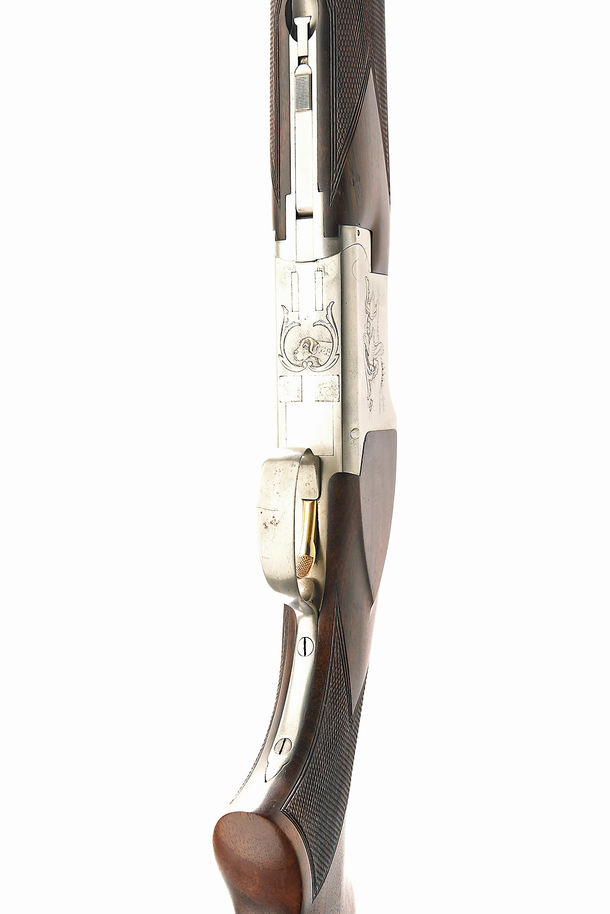 BROWNING ARMS COMPANY 12-BORE 'A3' SINGLE-TRIGGER OVER AND UNDER EJECTOR, serial no. 8H3PZ11634, for 1981, 27 1/2in. nitro barrels with 12mm ventilated matt top-rib, applied high visibility fore-sight, 2 3/4in. chambers, bored approx. 1/4 and 1/2 choke, hold-open toplever, manual safety with integral barrel selector, gold-washed trigger, brushed finish with engraved scenes of English partridge, pheasant and pointer, signed 'J.M. DEPREZ', 15in. pistolgrip stock including 7/8in. horn extension, weight 7lb. 8oz., in a leather case