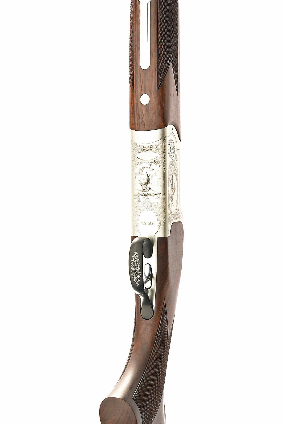 YILDIZ 20-BORE (3IN.) 'NBD TS 870' SINGLE-TRIGGER OVER AND UNDER EJECTOR, serial no. U20851, for 2010, 28in. nitro barrels with 7mm ventilated matt top-rib ventilated mid-rib, 3in. chambers, multichoke (with spares), hold-open toplever, manual safety with integral barrel-selector switch, alloy action, acanthus scroll and game-scene engraving, 13 1/8in. pistolgrip stock including rubber recoil pad, original 1 1/2in. wooden stock cut-off present, weight 5lb. 15oz., in its makers cardboard carton