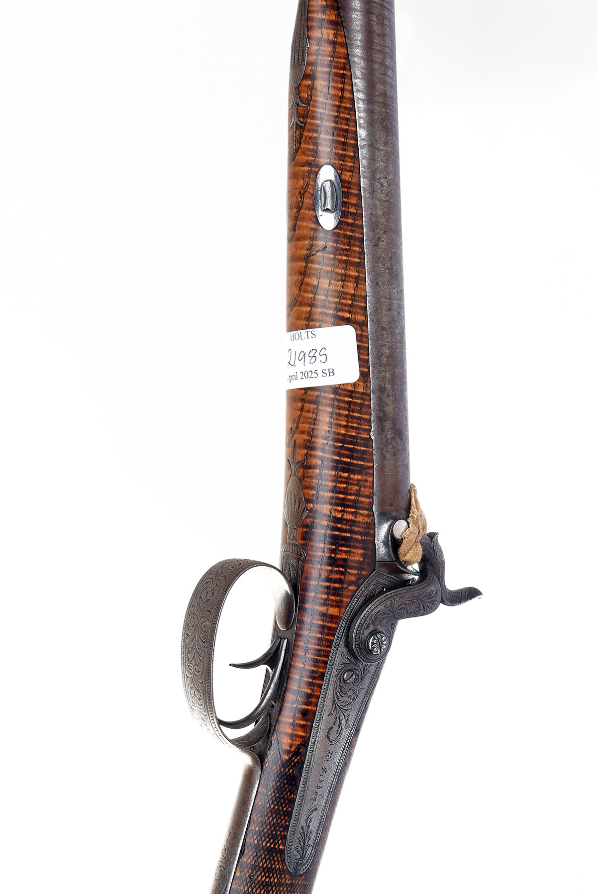 A 16-BORE PERCUSSION DOUBLE-BARRELLED SPORTING-GUN SIGNED W. SIDDON, serial no. 8,