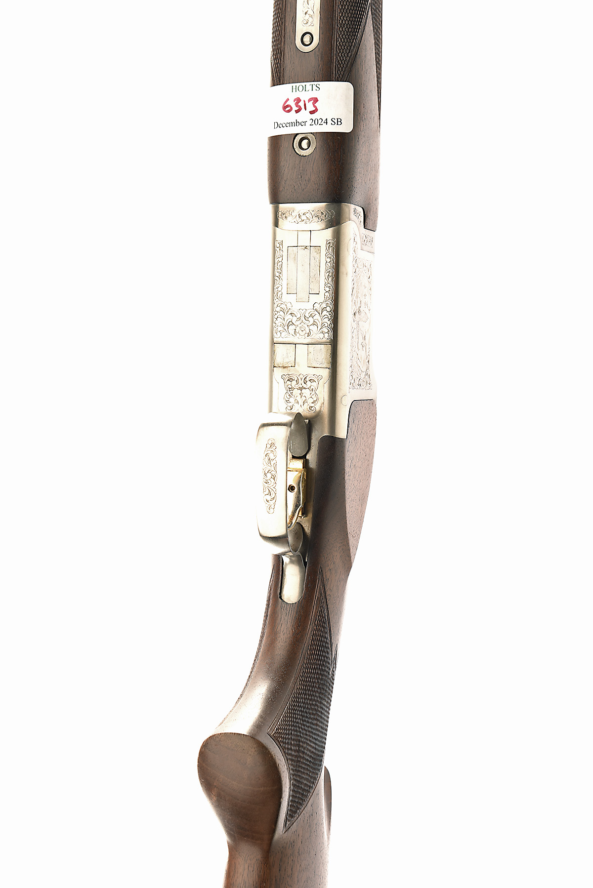 BROWNING 12-BORE 'MOD. 325 SP' SINGLE-TRIGGER OVER AND UNDER EJECTOR, serial no. 51548PN, dated 1989, 28in. nitro barrels with 13mm ventilated matt top-rib, 2 3/4in. chambers, multichokes (no spares), hold-open toplever, manual safety with integral barrel selector switch, gold-washed adjustable single trigger, acanthus scroll engraving surrounding game scenes, silver finish, 14in. pistolgrip stock including buttplate, weight 7lb. 8oz.