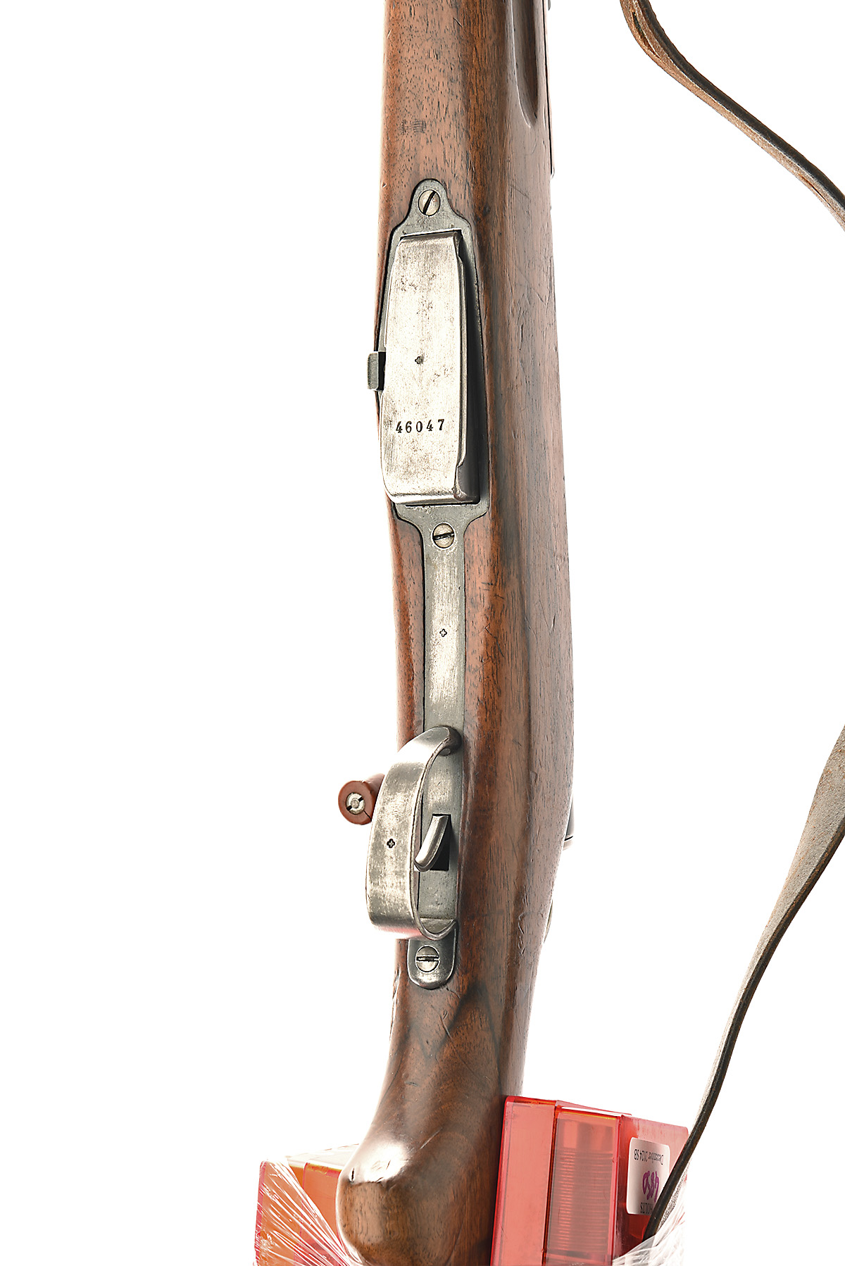 SCHMIDT RUBIN 7.5x55mm SWISS 'MODEL 1911 CARBINE' STRAIGHT-PULL BOLT-MAGAZINE SERVICE CARBINE, serial no. 46047, for 1916, 23 1/4in. nitro reproved barrel (in 2010), block and blade fore-sight with side protectors, adjustable tangent rear sight, receiver fitted with a sight rail, straight pull action, detachable box magazine, three-quarter length stock, 12 1/2in. pull including steel buttplate, leather sling, together with two sets of loading dies
