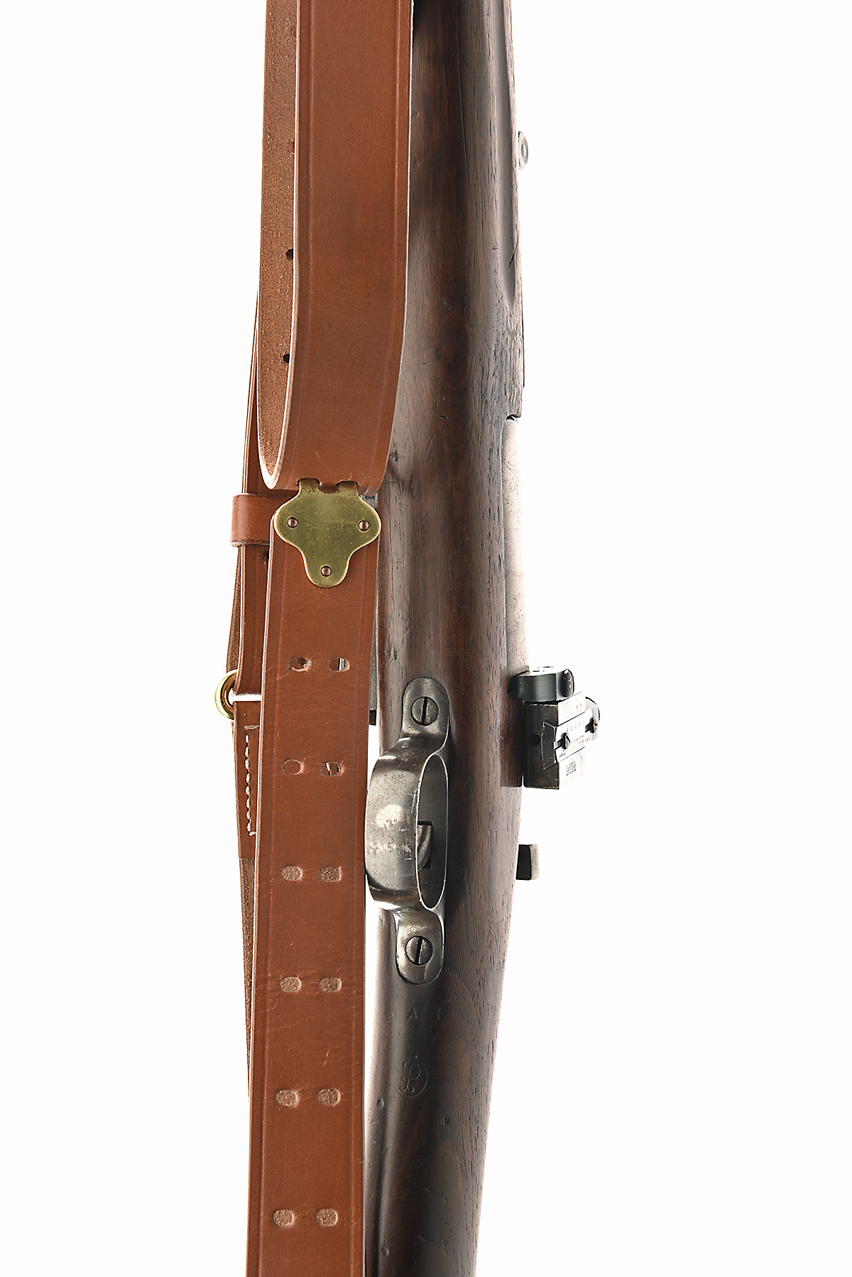 SPRINGFIELD ARMORY .30 ARMY (.30-40 KRAG) 'MODEL 1896 KRAG JORGENSEN' BOLT-MAGAZINE SERVICE RIFLE, serial no. 106768, for 1899, 30in. nitro reproved barrel (in 1969), tall block-mounted blade fore-sight, adjustable tangent rear-sight graduated from 2-20 and with windage adjustment, receiver fitted with a later Parker Hale PH5A aperture rear sight, receiver marked 'MODEL 1896. U.S. SPRINGFIELD ARMORY. 106768.', internal rotary magazine, manual flag safety, manual cocking-knob, three-quarter length stock, single barrel-band, leather sling, 13 1/2in. pull including steel buttplate, weight 10lb. 5oz.